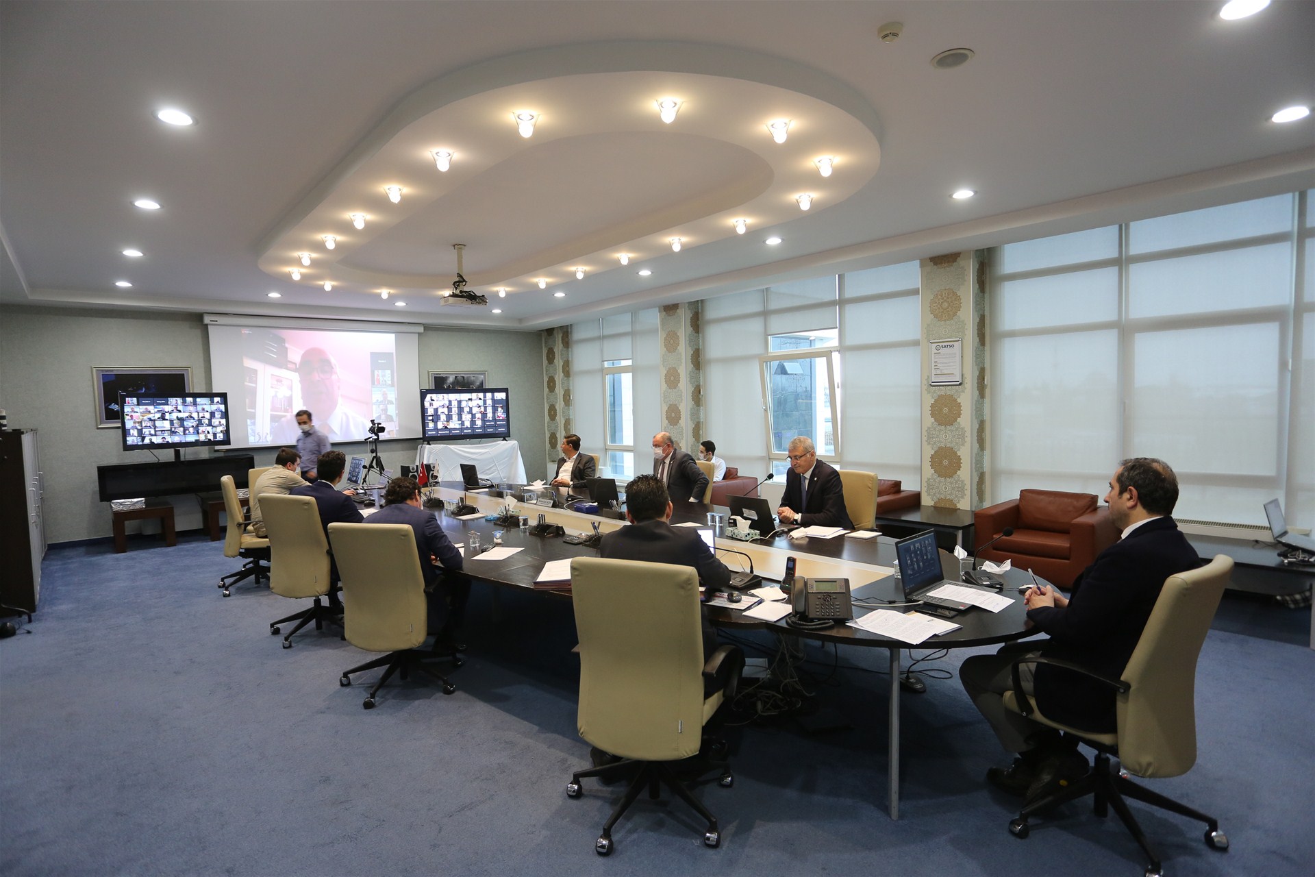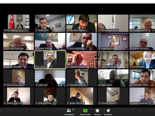 Uzaktan erişimle gerçekleştirilen toplantıya Meclis Başkanı Talip Kuriş ve Yönetim Kurulu Başkanı A. Akgün Altuğ, SATSO Yönetim Kurulu toplantı salonundan iştirak ettiler.
