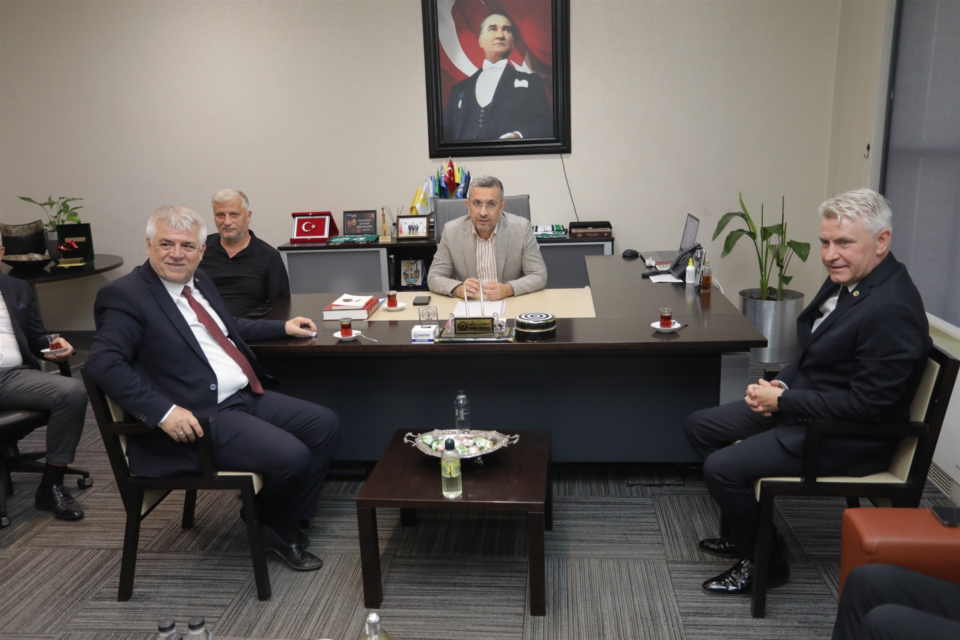 Sakarya Ticaret ve Sanayi Odası Yönetim Kurulu Başkanı A. Akgün Altuğ, Meclis Başkanı Erdem Ercan, Sakaryaspor Yönetim Kurulu Başkanı Muhammet Kıratlı ve yönetimini SATSO hizmet binasında ağırladı.