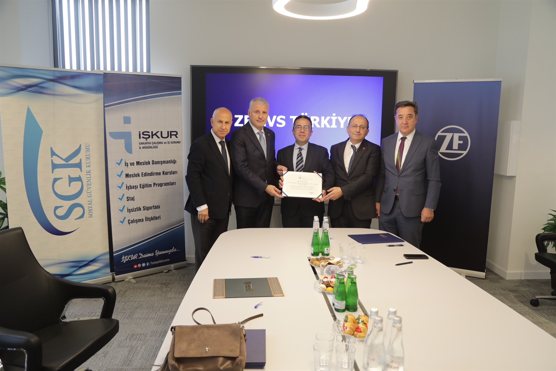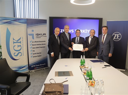 ZF CVS Türkiye Sakarya tesisinde gerçekleşen protokol törenine Sakarya Vali Yardımcısı Asalet Karabulut, İŞKUR İl Müdürü Tekin Kaya, SGK İl Müdürü Erhan Çavuş, ZF CVS Türkiye Genel Müdürü Kazım Eryılmaz ile firma yöneticileri katıldı.