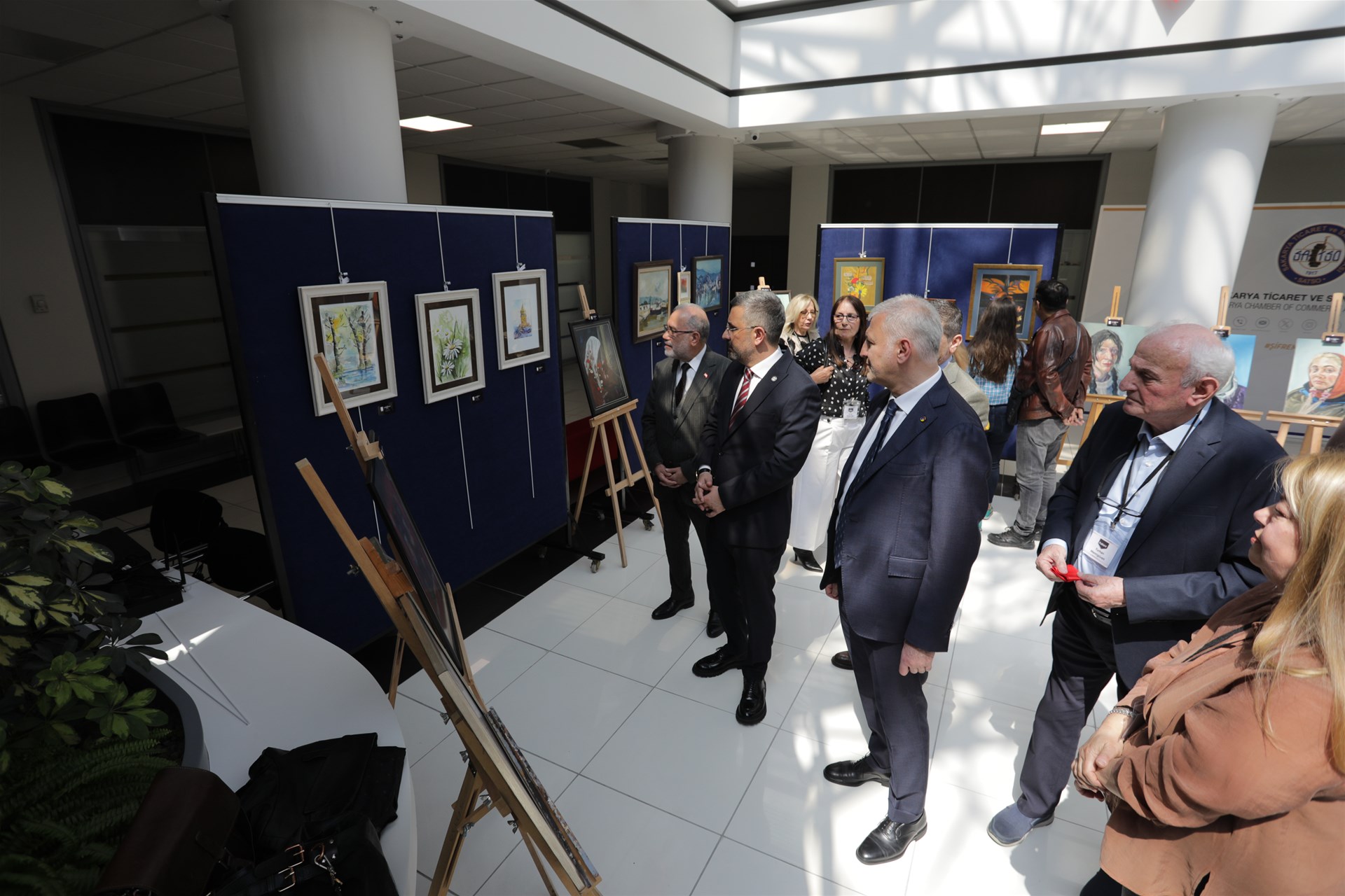 Açılış konuşmalarının ardından kurdele kesimi gerçekleşti. Yönetim Kurulu Başkanı Altuğ ve Meclis Başkanı Ercan ile tüm konuklar sergilenen eserler inceleyerek sanatçılardan bilgi aldı.