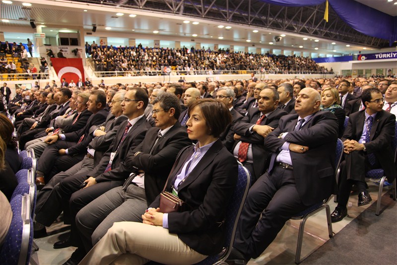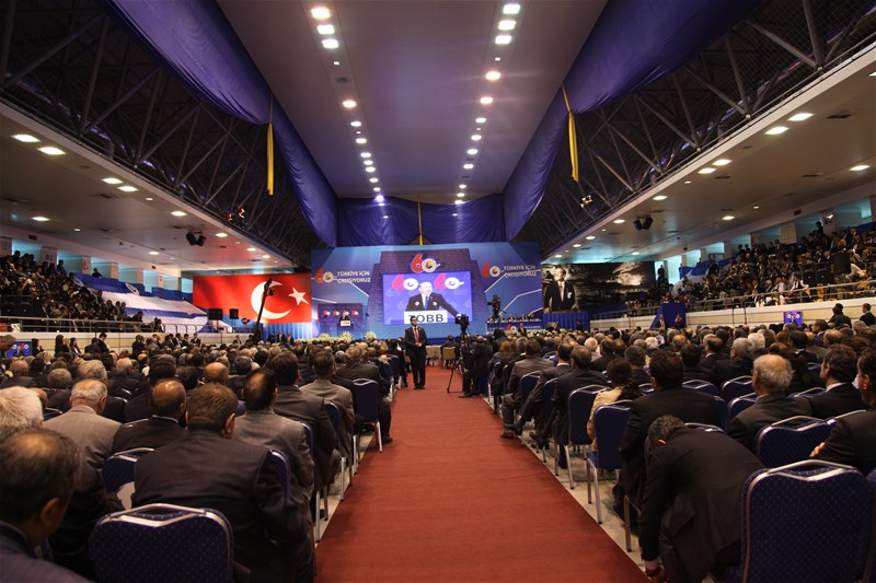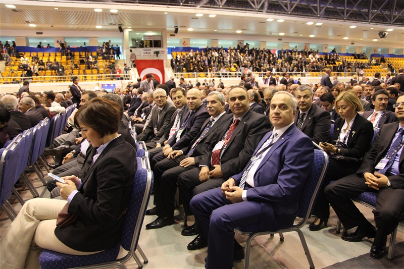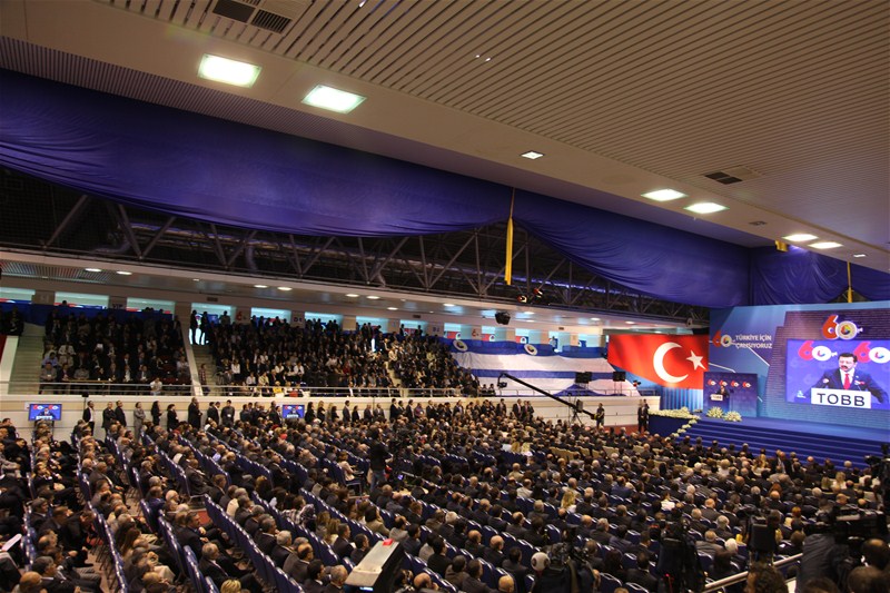 Genel Kurulun açılış konuşmasını yapan TOBB Başkanı M.RifatHisarcıklıoğlu, AB Ülkelerinin ekonomik krize girdiği ve ülkeler arası siyasi krizlerin arttığı bir dönemde Türkiye'nn %8,5 oranında büyüdüğü vekayıtlı istihdamın 1 milyon 62 bine ulaştığını belirterek "1398 bin faal işyeri mevcut, özel sektörün makine techizat yatırımı %25 arttı, ihracat 135 milyar dolara çıktı, ihracat yapan üye sayımız yüzde 8 artarak 54 bine, yaptığımız ihracat yüzde 18 artarak 135 milyar dolara ulaştı. Bu rekor rakamların ve bu tarihi başarının temelinde özel sektörün büyük gayreti var ve Türk iş dünyası olarak daha iyisini yapacak inanç ve azme sahibiz" dedi. Hisarcıklıoğlu, "Roma bir günde kurulmadı" sözünü hatırlatarak "10 yıl sonra dünyanın en büyük 10 ekonomisinden biri olmak ve muasır medeniyetler seviyesinde olmak için çalışmalıyız. 10 yıl sonra bu koltuklarda oturan çocuklarımız bizim başarımızı konuşsunlar. Biz de bunu yapacak güç var, biz millete millet bize güveniyor" dedi.
