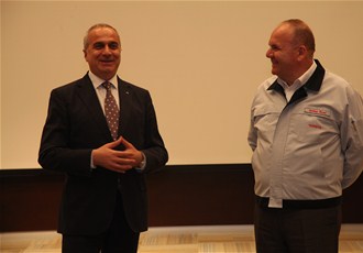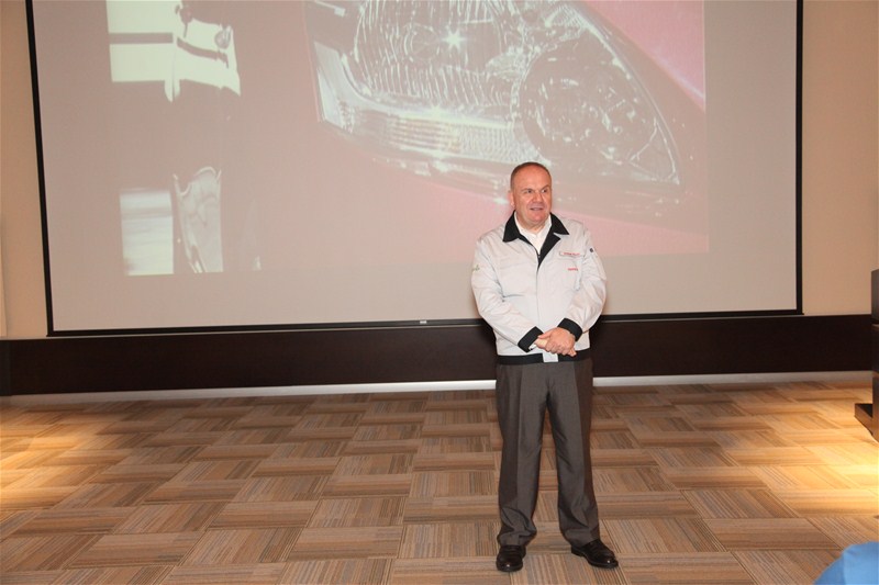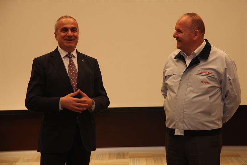 Fabrika gezisinden önce konferans salonunda ağırlanan topluluğa hoş geldiniz konuşması yapan TOYOTA CEO'su Orhan Özer Toyota'nın tarihi gelişimi ve Türkiye ekonomisindeki yeri üzerine değerlendirmelerde bulundu. Özer konuşmasında yeni üretim projeleri hakkında bilgi vererek Toyota`nın küresel bir binek araç modelinin Türkiye`de üretimi konusunda ilk aşama olan fizibilite görüşmelerinin olumlu sonuçlandığını, global olarak nihai kararın Kasım ayında verileceğini söyledi. Özer ayrıca Avrupa'daki 8 Toyota fabrikası arasında ilk üçte yer aldığını ve özellikle uygulanan iş sağlığı ve iş güvenliği açısından diğer fabrikalardan açık ara önde olduklarını dile getirerek "Bu konuda ciddi bir başarımız var. Toplam 68 Toyota fabrikası arasında en az hata ile üretim yapan Toyota Türkiye fabrikasında geçtiğimiz yıl ciddi iş kazası meydana gelmedi" dedi. Toyota Türkiye`nin üretiminin bu yıl ağırlıklı olarak Avrupa`da yaşanan krizin etkisi ve Auris modeli üretiminin sona ermesiyle 2011'e göre düşüş beklendiğini belirten Orhan Özer,"C sınıfı sedanın etkisiyle üretimin yeniden yıllık olarak 150 bin seviyesine çıkması, önümüzdeki dönemde ise pazarlardaki iyileşmeyle beraber bu rakamın resmi kapasite olan 170 bin seviyelerine doğru yaklaşması öngörülüyor. Toyota bu proje ve bu rakamlarla Türkiye'nin ihracat şampiyonu olacak. Bizim en önemli hedefimiz başarılı bir kurumsal vatandaş olmak. Burası sizin de eviniz ve evinize hoşgeldiniz" dedi.