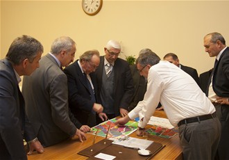 Dörtyol Sanayi esnafı temsilcileri, SATSO Yönetim Kurulu Başkanı Mahmut Kösemusul, SESOB Başkanı Hasan Alişan ile birlikte Büyükşehir Belediye Başkanı Zeki Toçoğlu'nu ziyaret ederek, 1/25.000 lik Nazım İmar Planı hakkında bilgi alırken, Dörtyol Çevre Sanayileri Küçük Sanayi Yapı Kooperatifi 'ne yer tahsisi ile ilgili görüş alış verişinde bulundular.