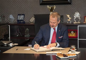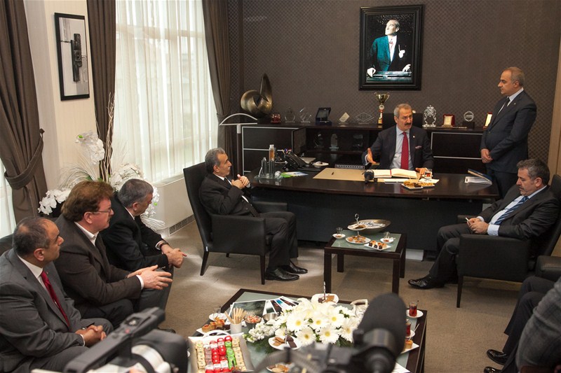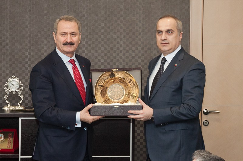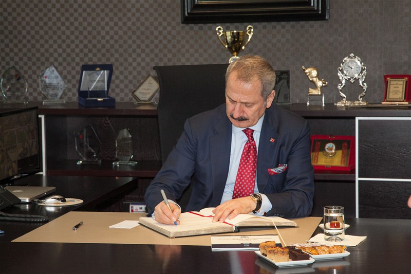 SATSO Yönetim Kurulu Başkanı Mahmut Kösemusul, günün anısına Ekonomi Bakanı Zafer Çağlayan'a çini işlemeli bir tabak hediye etti. Bakan Çağlayan SATSO'nun Şeref Defterini de imzaladıktan sonra, SATSO ailesi ile birlikte hatıra fotoğrafı çektirdi.