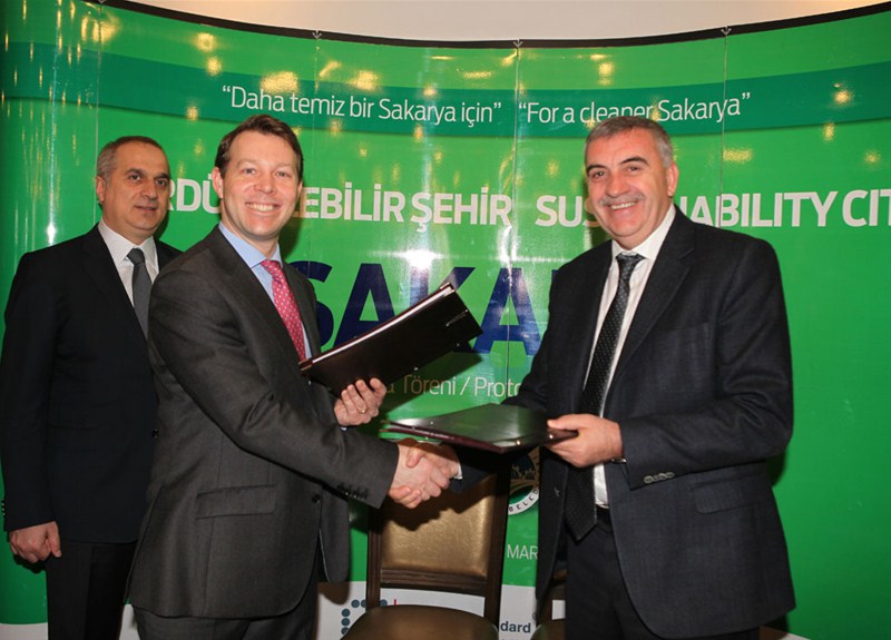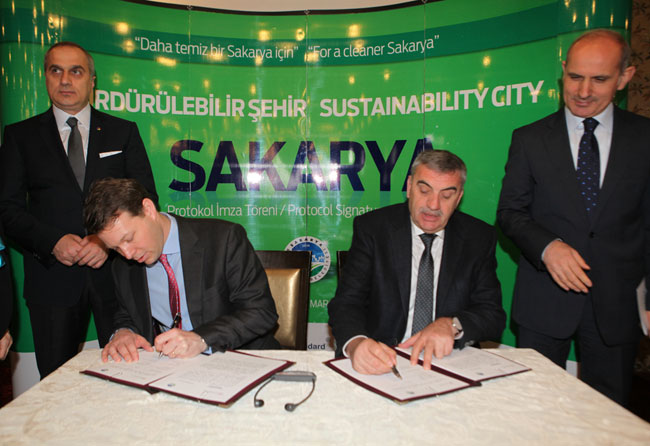 Konuşmaların tamamlanmasının ardından Büyükşehir Belediye Başkanı Zeki Toçoğlu ve Gold Standart Vakfı CEO'su Adrian Rimmer, “Sürdürülebilir Şehir Sakarya” protokolünü imzaladı.