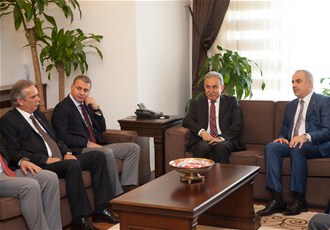 Sakarya Ticaret ve Sanayi Odası (SATSO) Meclis Başkanı Akgün Altuğ ve Yönetim Kurulu Başkanı Mahmut Kösemusul, Vali Mustafa Büyük'ü makamında ziyaret ederek, yeni seçilen yönetim kurulunu tanıttılar.