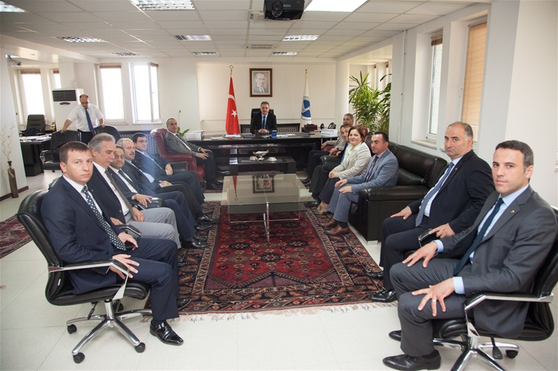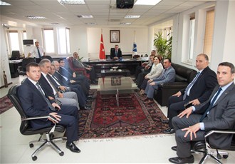 Yönetim Kurulu Başkanı Yardımcısı Günay Güneş, Orhan Yılgenci, yönetim kurulu üyeleri; Nadir Öztürk, Emrullah Terzioğlu, Burhan Akçam, Ömer Arslan, Ertuğrul Öztürk, Yunus Tever, Murat Can, Fatma Aygün ve Genel Sekreter Uğur Tın ile birlikte SAÜ Rektörü Prof.Dr. Muzaffer Elmas'ı ziyaret eden SATSO Yönetim Kurulu Başkanı Mahmut Kösemusul, üniversite sanayi işbirliğinin önemine değindi.