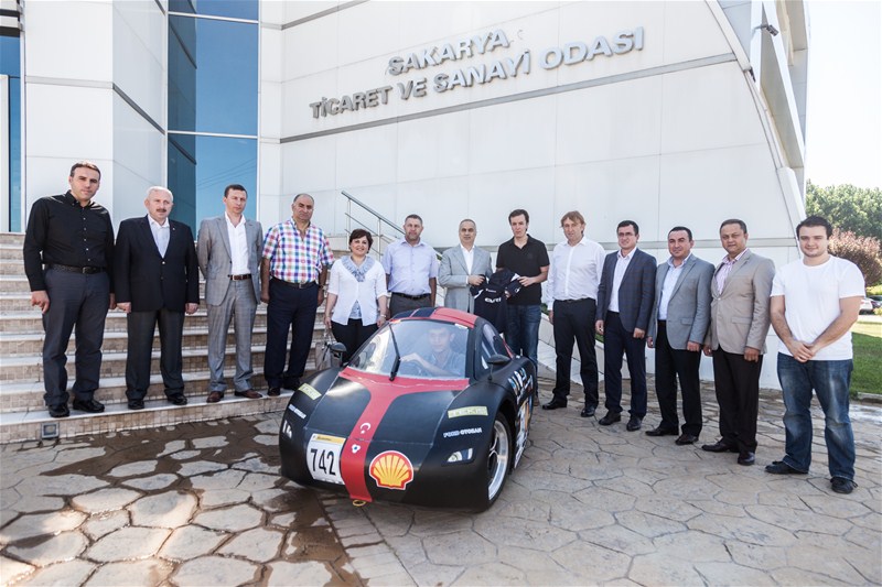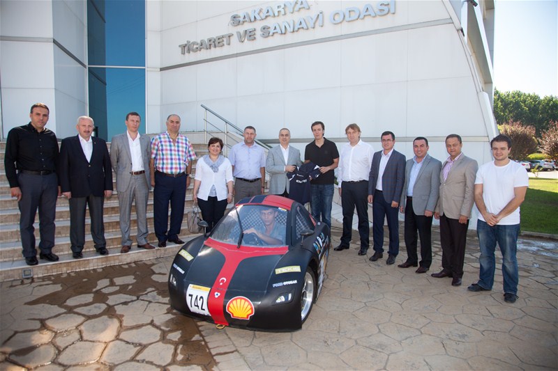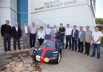 Sakarya Üniversitesi İleri Teknolojiler Uygulama Topluluğu (SAİTEM) topluluğu Sakarya Ticaret ve Sanayi Odası Yönetim Kurulu Başkanı Mahmut Kösemusul'u makamında ziyaret ederek elektrik enerjisi ile çalışan EVRİM 2 aracının yurtdışında temsil edilebilmesi için verdikleri katkılardan dolayı teşekkür ettiler.