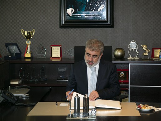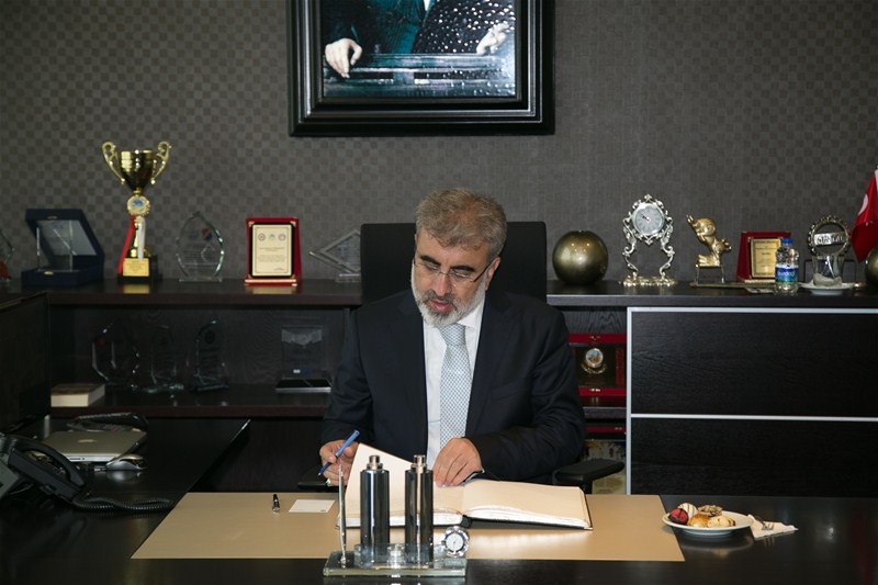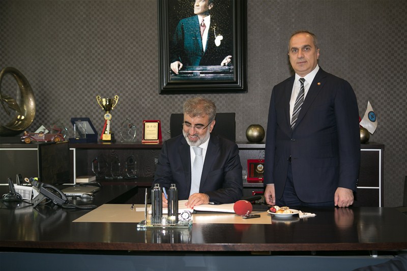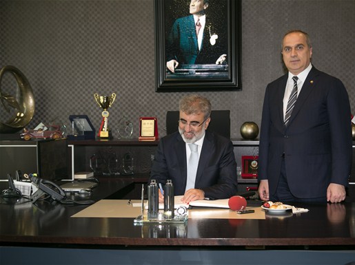 Enerji Tabii Kaynaklar Bakanı Taner Yıldız'ın ziyareti vesilesi ile Yönetim Kurulu Başkanı Kösemusul Sakarya hatırası takdiminde bulundu