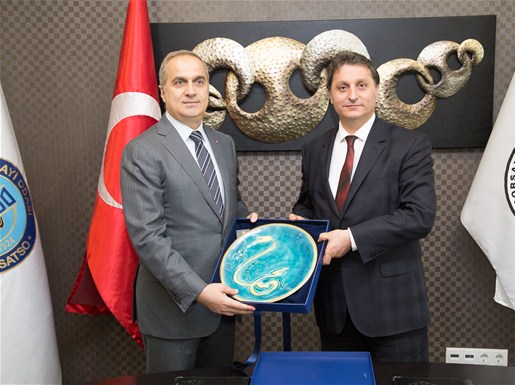 Protokol İmza Töreni'nin ardından TSE Marmara Bölge Başkanı Mehmet Hüsrev ve SATSO Yönetim Kurulu Başkanı Mahmut Kösemusul kurumlar arası işbirliğinin anısına hatıra takdiminde bulundular.