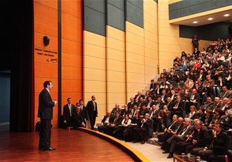 Sakarya Ticaret ve Sanayi Odası'nın Kuruluş Yıldönümü ve Ödül Töreni etkinlikleri münasebetiyle ilimize gelen TOBB Başkanı M.Rifat Hisarcıklıoğlu, aynı gün saat 14:00'te Sakarya Üniversitesi Kültür ve Kongre Merkezinde “Liderlik ve Girişimcilik” konulu bir konferans verdi.