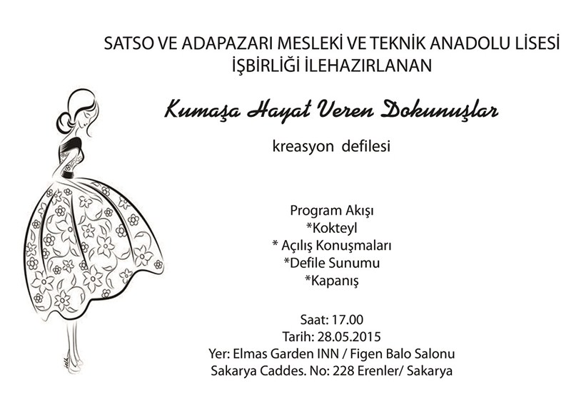 Vali Hüseyin Avni Coş’un teşrifleriyle, SATSO önderliğinde 24. Meslek Komitesi ve Adapazarı Kız Teknik ve Meslek Lisesi tarafından düzenlenecek defilede öğrenciler kendi tasarladıkları kıyafetleri sergileyecekler.