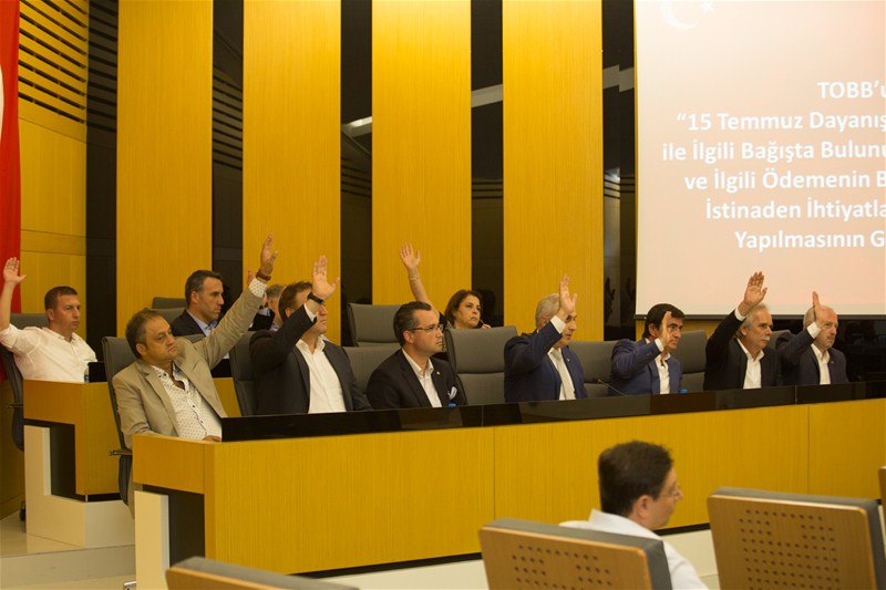 TOBB’un, “15 Temmuz Dayanışma Kampanyası” ile İlgili Bağışta Bulunulması Konusunun ve İlgili Ödemenin Bakanlığın iznine İstinaden İhtiyatlar Hesabından Yapılmasının Görüşülmesi”, maddesinde kürsüye gelen SATSO Yönetim Kurulu Sayman Üyesi Nadir Öztürk yaptığı açıklamada 15 Temmuz Darbe girişiminden sonra Başbakanlık genelgesiyle başlatılan Dayanışma Kampanyasına SATSO tarafından 50.000- TL. bağış yapılmasının planlandığını belirterek bu bağışın İhtiyatlar Hesabından yapılacağını ifade etti.