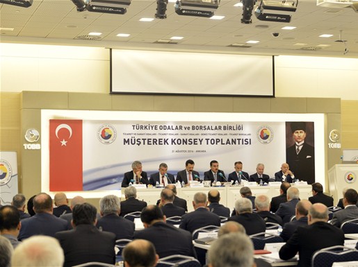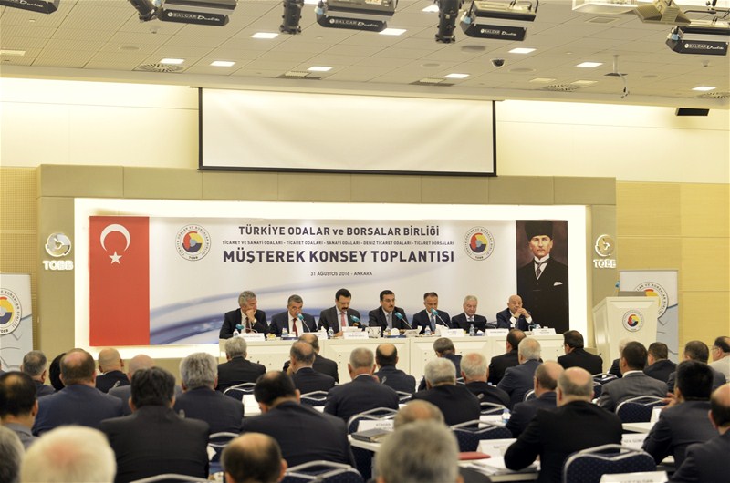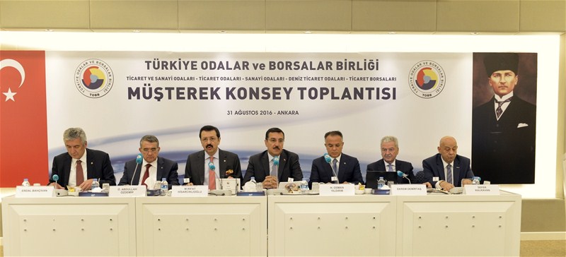 Müşterek Konsey Toplantısı’nda konuşan TOBB Başkanı M. Rifat Hisarcıklıoğlu, TOBB’un demokrasi şehitleri için toplandığı yardımın 27 milyon liraya ulaştığını söyledi. Yardım kampanyasının halen devam ettiğini belirten Hisarcıklıoğlu, “TOBB, Odalar ve Borsalar olarak tam 27 milyon lira yardım topladık, daha da devam ediyoruz. Bu camiayla iftihar ediyorum” dedi. Hisarcıklıoğlu, “15 Temmuz’daysa bunlardan daha sinsi olan ama aynı hainlikteki FETÖ örgütünü gördük. Hem Türkiye siyaseti hem de Türkiye ekonomisi için tarihi bir stres testi oldu. Milletin dirayetiyle bu test başarıyla geçildi. Sağlamlığı tescillenmiş demokrasimizle, siyasi partilerimiz arasında başlayan mutabakat zeminiyle, halkımızdaki birlik beraberlik duygularıyla, geleceğe daha olumlu bakıyoruz. Siyasetteki mutabakat ortamının, piyasalardaki güveni artıracağına ve ekonomimize yeni bir ivme kazandıracağına inanıyoruz. Şimdi ekonomiyi normalleştirme ve somut adım atma zamanı. Yapısal reformlara ve küresel rekabette bizi öne çıkaracak adımlara her zamankinden daha fazla ihtiyacımız var” ifadesini kullandı.