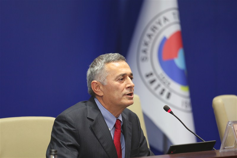 Kürsüye gelen Sakarya Üniversitesi Rektörü Prof. Dr. Muzaffer Elmas, “Dünyada yükseköğretim ile ilgili her türlü yeniliği yakından takip edip izleyen bir üniversiteyiz. Dünyada yeni kavramlar var. Kalite süreçleri, aktivasyon süreçleri, üniversite değerlendirme süreçleri, performans, izleme gibi hususlar üniversitelerin olmazsa olmazları haline geldi. Global olarak bakıldığında, aslında mantalite olarak değişen hiç bir şey yok yani dünya bin iki yüzlü yılların, binli yılların mantalitesinde temel fikir olarak işin içine sadece dijital dünya ve internet girdi ve bizde bunu iyi kullanan interneti, bilişim uygulamalarını iyi kullanan bir üniversiteyiz. Bu bakımdan bu ödülleri alıyoruz zaten. Rekabet etmek isteyen bir kişi bu süreçlerin içinde de olmak zorunda. Siz dünyayı yakından bilip tanıyıp oradaki gelişmelere göre bir iş yapıyorsanız bu sizi ileri taşıyacaktır. Şimdi endüstri 4.0 kapsamında yapılmak istenen şeyler aslında bizim üniversite de yaptığımız işlerin benzeri biz de dijital bir üniversite kurmaya çalışıyoruz. Üniversite de ayrı ayrı giden operasyonları dijital anlamda birbiriyle konuşturmak ilişkilendirmek amacındayız.