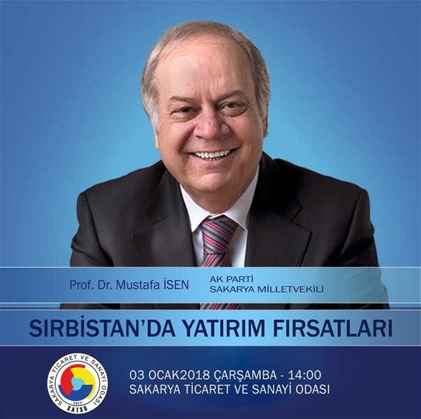Bu doğrultuda 2018 yılının ilk etkinliği olarak AK Parti Sakarya Milletvekili Prof. Dr. Mustafa İsen'in sunumuyla 03 Ocak 2018 Çarşamba Günü (YARIN) Saat 14.00'da “Sırbistan’da Yatırım Fırsatları” konulu seminer gerçekleşecek..