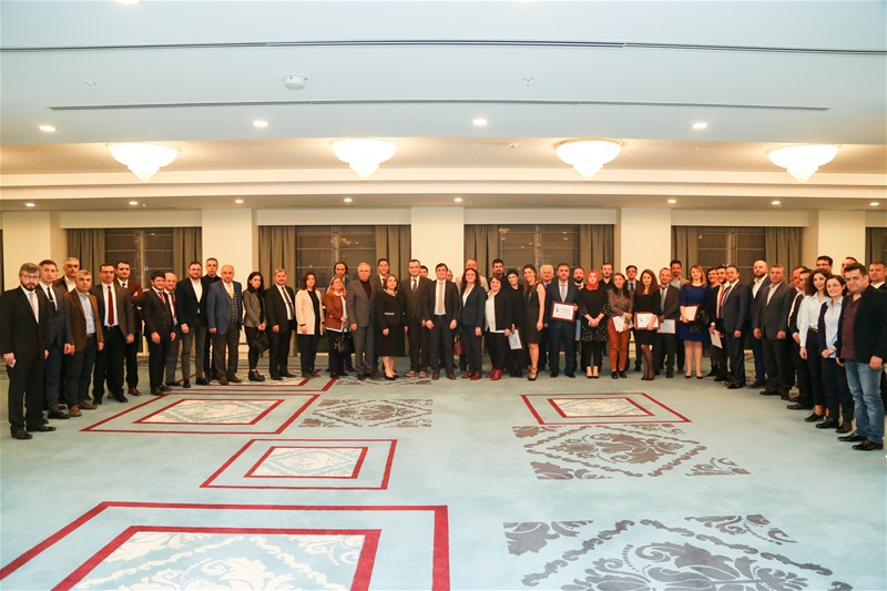Fındık ihracatı ve özel amaçlı asansör taşıma sistemi ile ilgili ihracat demolarının sunulmasının ardından geçilen sertifika töreninde 31 katılımcı firma yetkilisine sertifikaları verildi.