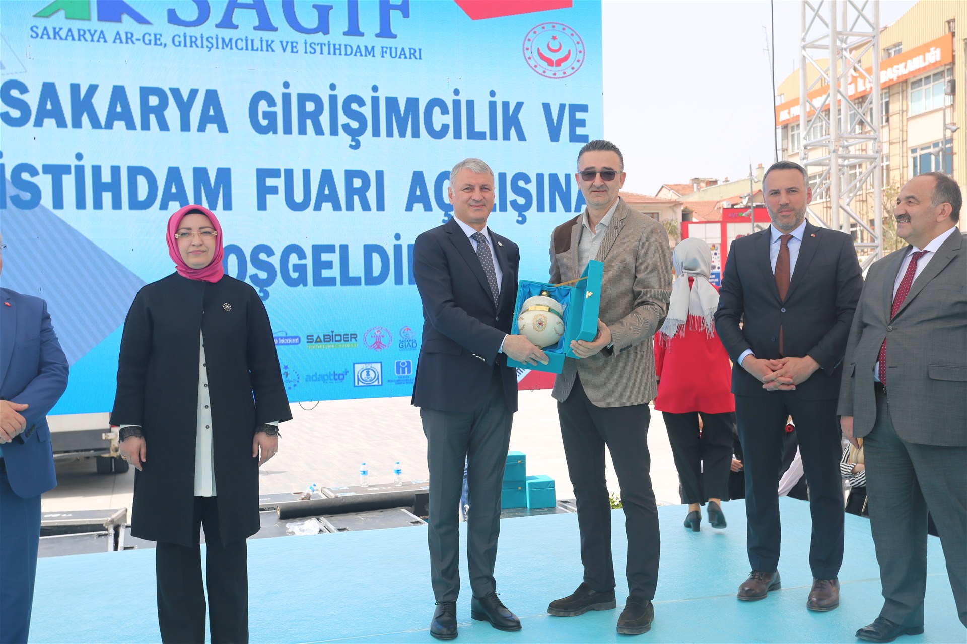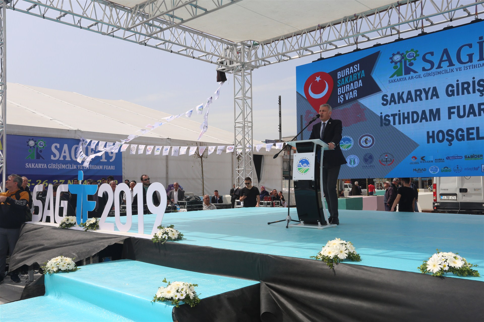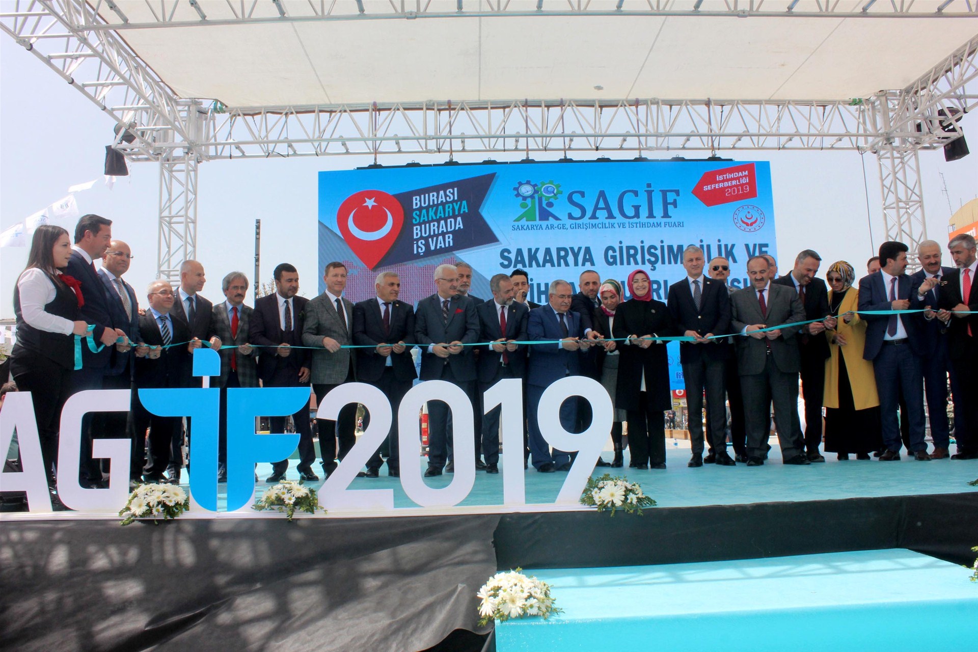 Sakarya AR-GE Girişimcilik ve İstihdam Fuarı (SAGİF) açılış törenine Sakaya Valisi Ahmet Hamdi Nayir, Ak Parti Sakarya Milletvekili Çiğdem Erdoğan Atabek, Sakarya Ticaret ve Sanayi Odası Yönetim Kurulu Başkanı A. Akgün Altuğ, Sakarya Üniversitesi Rektörü Prof. Dr. Fatih Savaşan, Sakarya Uygulamalı Bilimler Üniversitesi Rektörü Prof. Dr. Mehmet Sarıbıyık, Türkiye İş Kurumu Genel Müdürü Cafer Uzunkaya, İŞKUR Sakarya İl Müdürü Tekin Kaya ve SGK Sakarya İl Müdürü Erhan Çavuş, Milli Eğitim İl Müdürü Fazilet Durmuş il protokolü ve çok sayıda davetli iştirak etti.