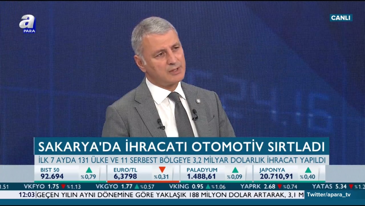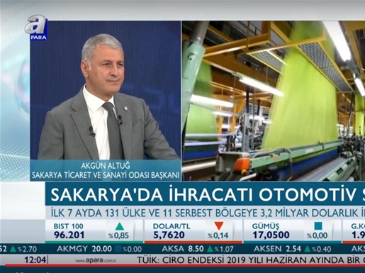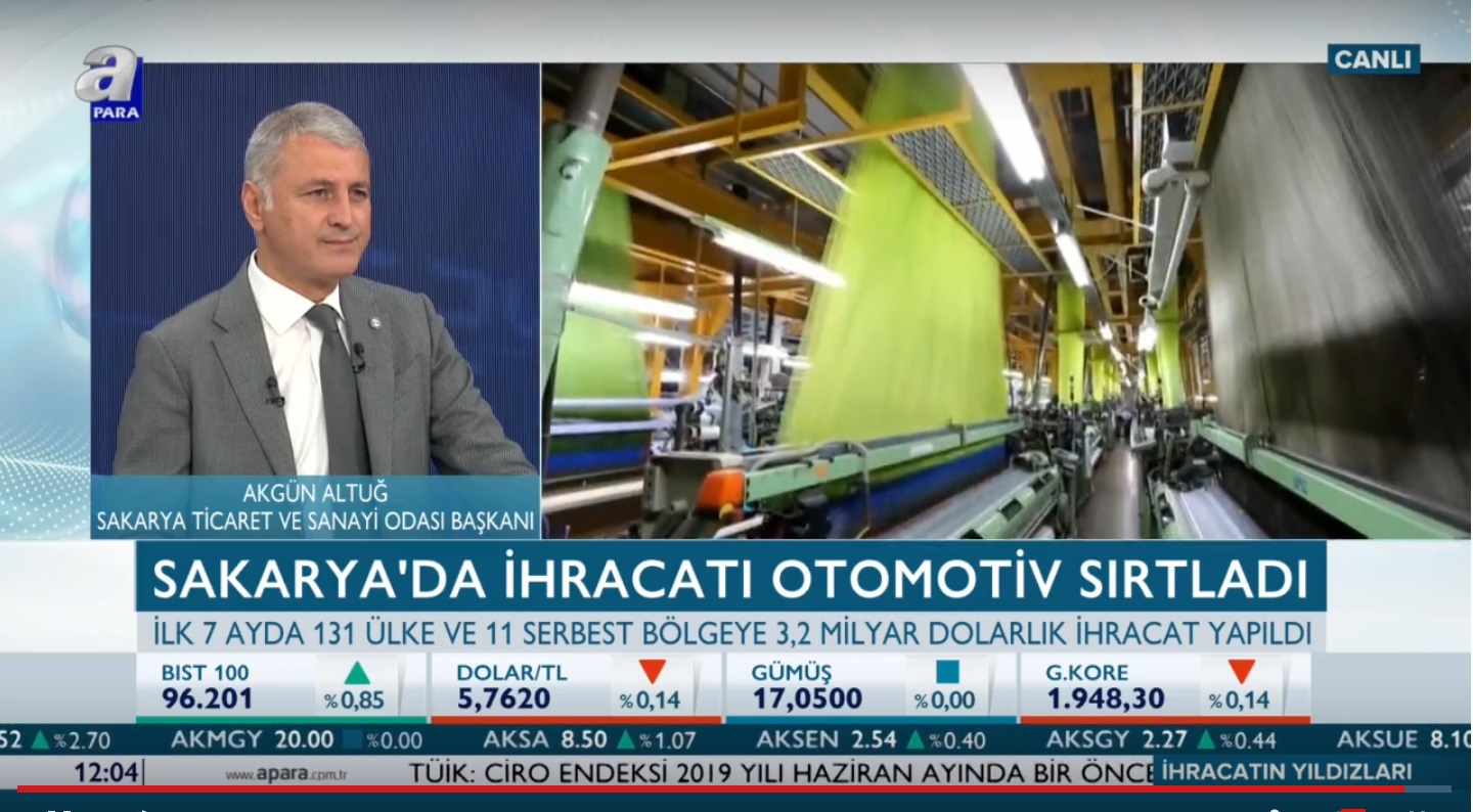 Sakarya Ticaret ve Sanayi Odası Yönetim Kurulu Başkanı A. Akgün Altuğ, Apara TV ‘İhracatın Yıldızları’ Programının konuğu oldu.