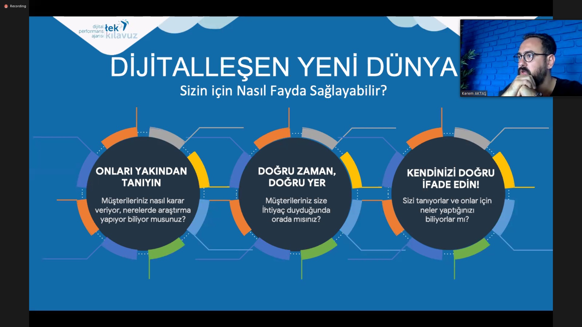 Eğitmen Kerem Aktaş; “Artık sürekli çevrimiçi durumdayız. 2010 yılında ülkemizde 8.5 milyon internet kullanıcısının yüzde 6.5’i akıllı telefon sahibiyken 2019 yılında bu sayı 59 milyonu buldu. Artık e-ticaret ve reklamlar tüketicilere evlerinin her odasında ulaşabiliyor. Kişilere ihtiyaçları olan, aradıkları konularda karşısına sürekli bir reklam çıkarılabiliyor. İnternet ile günlük yaşamda var olan alışkanlıklar ciddi oranda değişti. Bu bakımdan pazarlama stratejileri de aynı oranda değişim gösterdi.” diye konuştu.