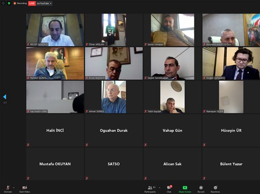 Video konferans şeklinde gerçekleştirilen Meclis Toplantısına Yönetim Kurulu Başkanı A. Akgün Altuğ, Meclis Başkanı Talip Kuriş, Yönetim Kurulu Başkan Yardımcısı Yüksel Avşar ve Yönetim Kurulu Sayman Üyesi Doğan Çatalbaş, SATSO Erol Öztürk Hacıeyüpoğlu Meclis Toplantı Salonundan iştirak ettiler.