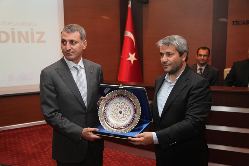Sakarya Ticaret ve Sanayi Odası Yönetim Kurulu Başkanı A. Akgün Altuğ SATSO Temmuz Ayı Olağan meclis Toplantısını onurlandırdığı için Sanayi Ticaret bakanı Nihat Ergün'e teşekkür ederek plaketini verdi.