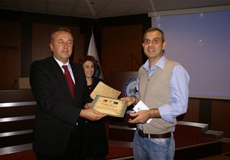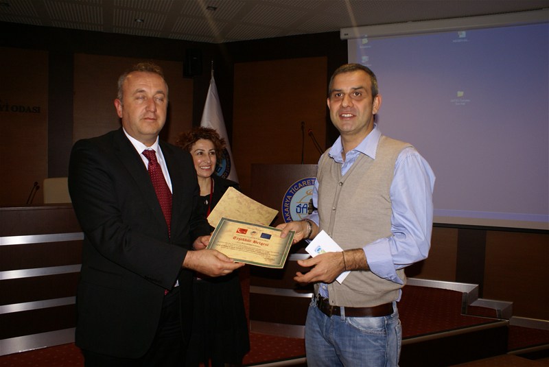 Proje kapsamında görevli öğretmenler SATSO Meclis Başkanı Engin Özkoç ve 5. Meslek Komitesi Üyelerine katkılarından dolayı teşekkür belgesi takdim ettiler.