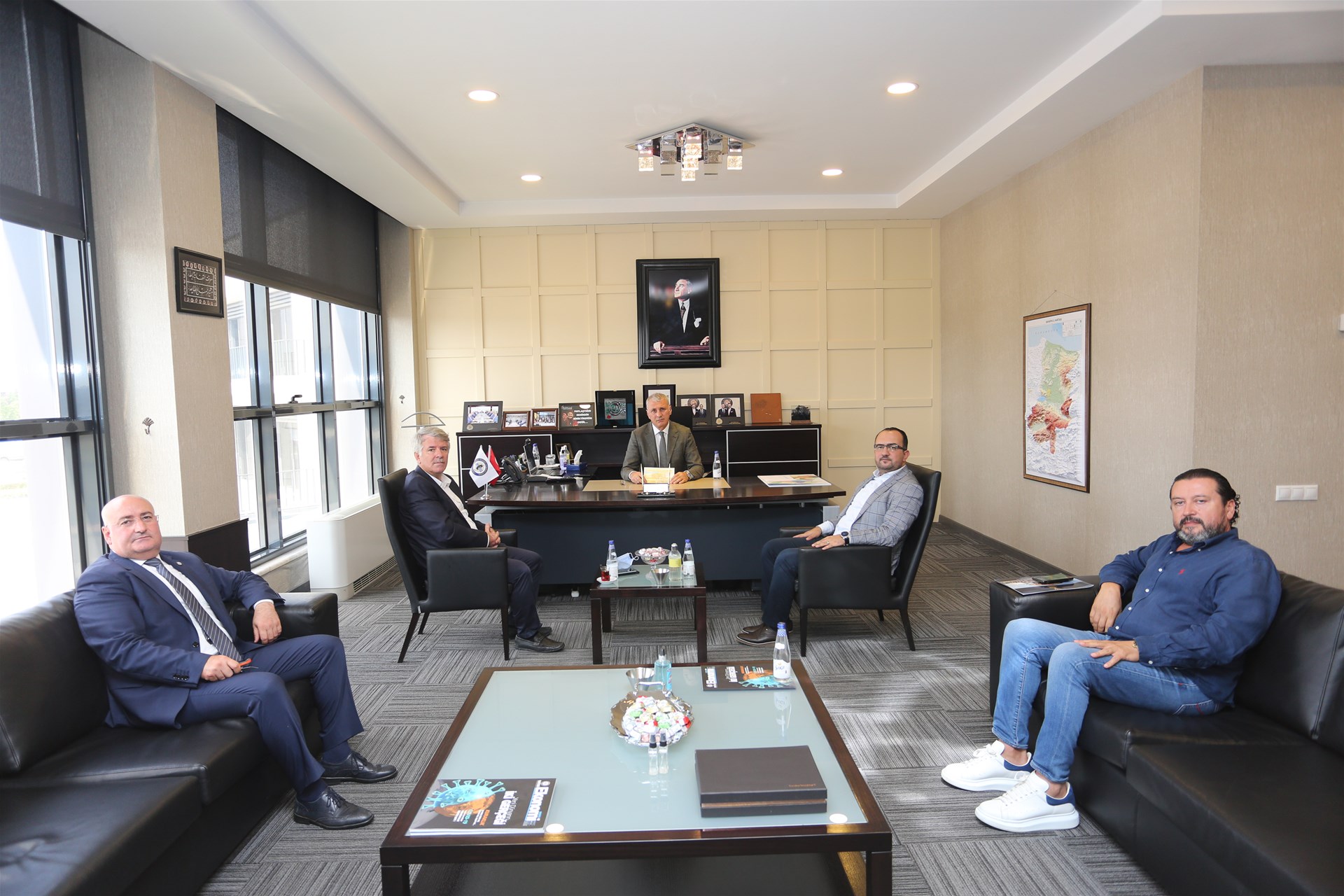 Sakarya Ticaret ve Sanayi Odası Yönetim Kurulu Başkanı A. Akgün Altuğ, Sakarya Büyükşehir Belediyesi Genel Sekreter Yardımcıları Ali Oktar ile Doç. Dr. Furkan Beşel’i makamında ağırladı.