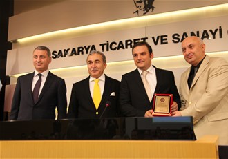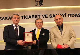 Meclis salonunun yapımında emeği geçen SATSO Yönetim Kurulu üyeleri adına Başkan Akgün Altuğ'a ve yönetim Kurulu üyesi Vahap Gün'e meclis Başkanı Engin Özkoç adına Vali Mustafa Büyük plaket takdiminde bulundu.