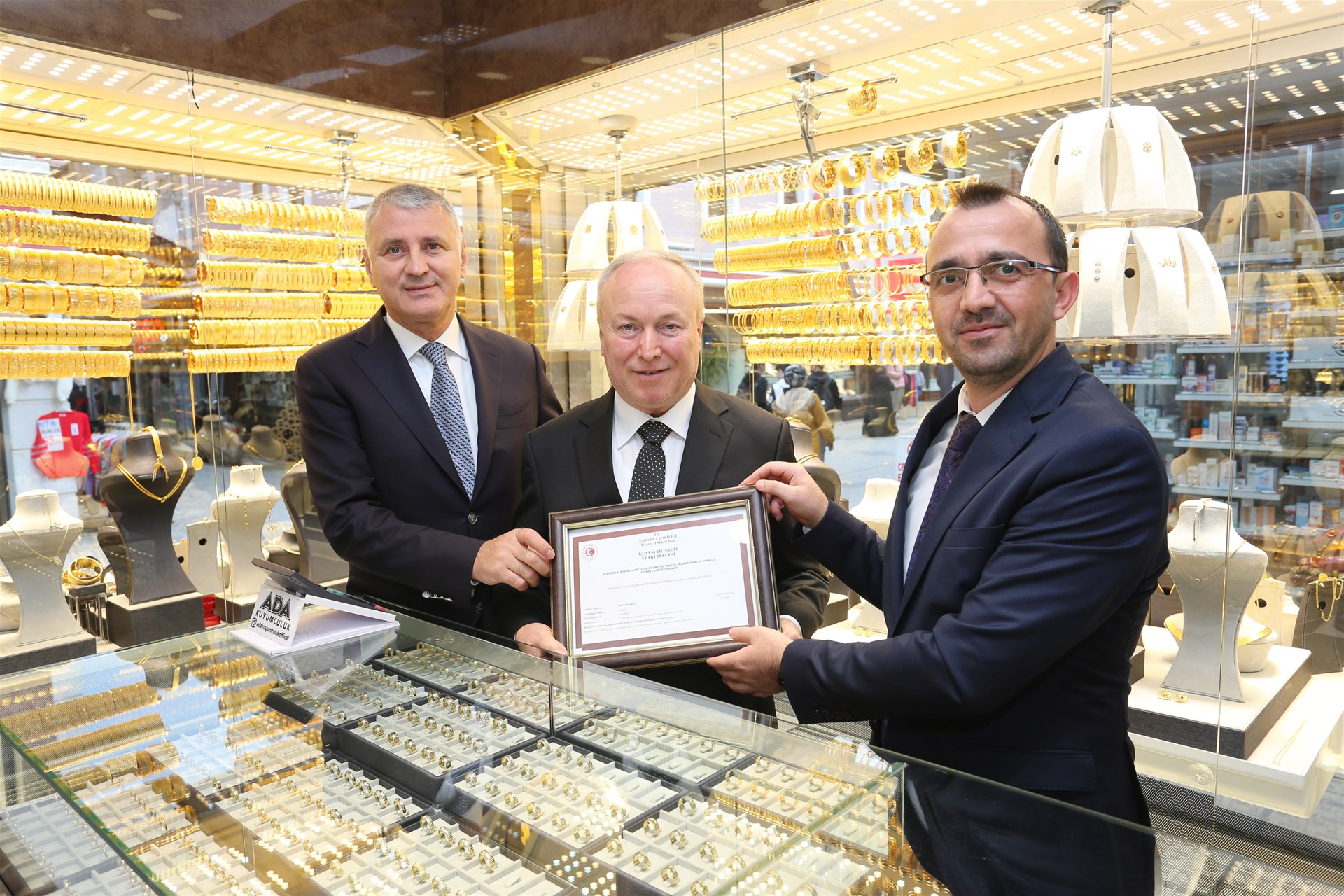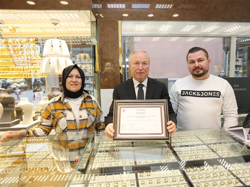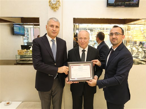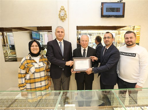 Bu kapsamda Sakarya’da faaliyet gösteren işletmeler içerisinde bu belgeyi alan ilk işletme olan SATSO Üyesi Ada Kuyumculuk’a belgesi, SATSO Yönetim Kurulu Başkanı A. Akgün Altuğ ve Sakarya Ticaret İl Müdürü Emre Atmaca tarafından takdim edildi.