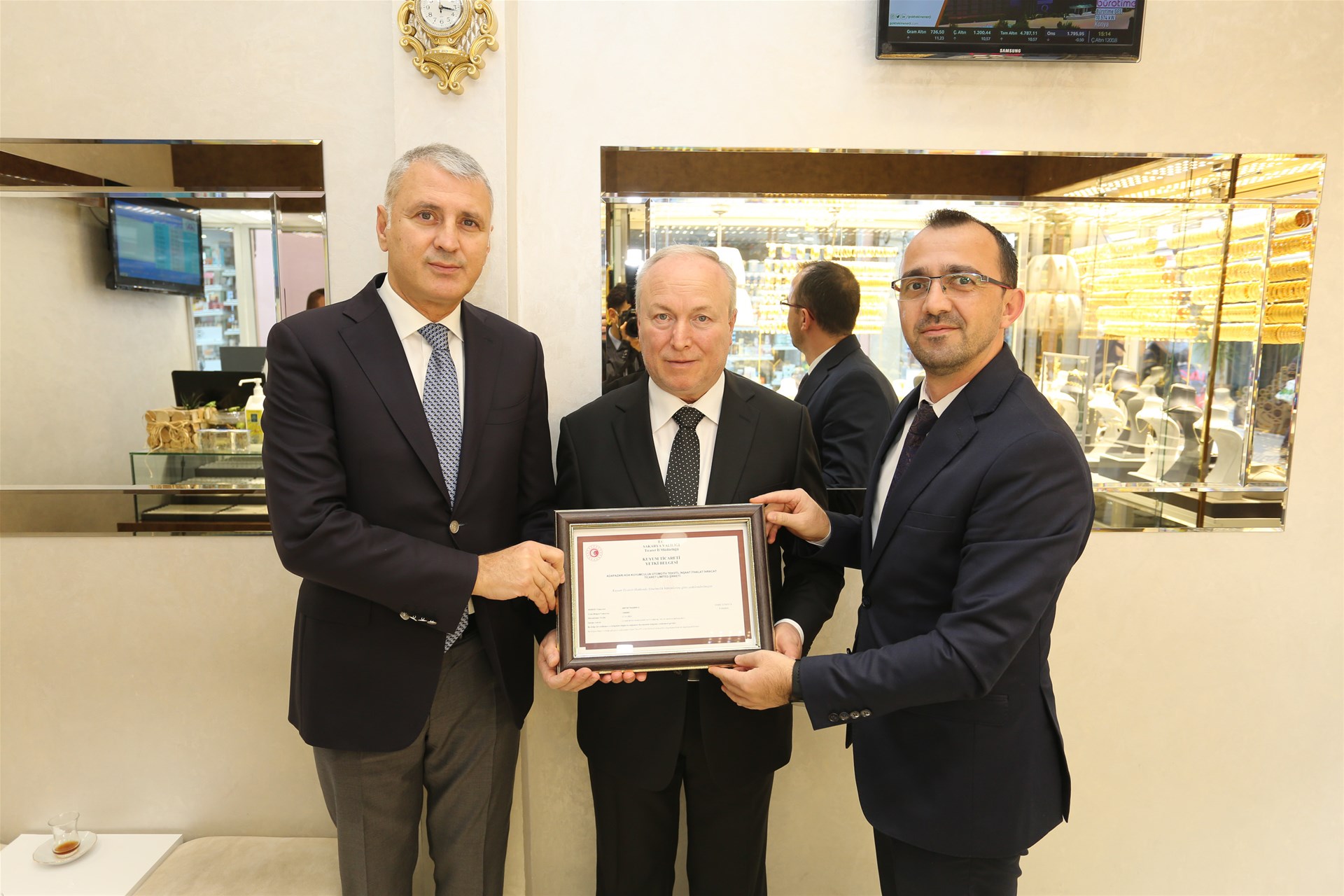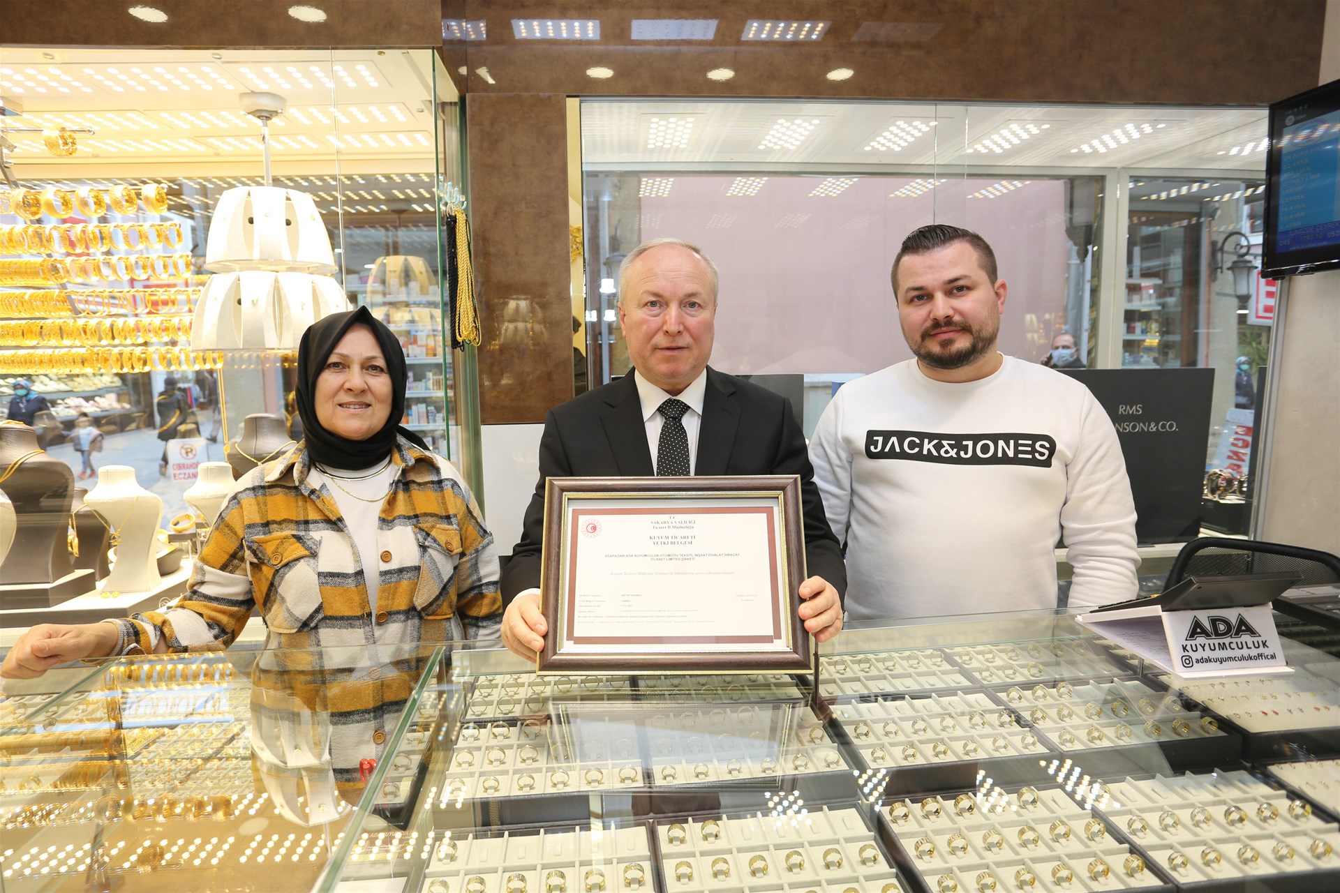 Ticaret İl Müdürü Emre Atmaca ise; “Yönetmelikle kuyum ticaretinin yanı sıra opal, akik, kuvars gibi yarı kıymetli taşlar ile bu taşlardan yapılan tespih gibi süs eşyalarının perakende satış, bakım ve onarımı da bu faaliyetlere dahil edilmiştir. Yönetmelik sonrası kuyum niteliği taşımayan demo/imitasyon ürünlerinin işletmelerde bulundurulması ve satışı yasaklanmıştır. Böylelikle tüketicide yanlış algı yaratılmasının ve haksız rekabet oluşmasının önüne geçilecektir. Sakarya’da bu belgeyi almaya hak kazanan ilk işletme olan SATSO üyesi Ada Kuyumculuk işletmesini gösterdiği hassasiyet ve ciddiyet için tebrik ediyoruz. Yetki belgesi başvurusu yapacak işletmeler www.sakarya.ticaret.gov.tr internet sitemizden ayrıntılı bilgiye ulaşabilirler.” dedi.