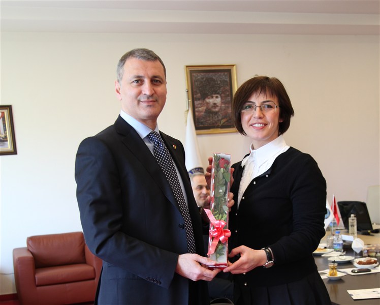 Sakarya Ticaret ve Sanayi odası Yönetim Kurulu Başkanı A. Akgün Altuğ SATSO Personeli bayanların ve Yönetim Kurulu Üyesi Yıldız Bezek'in “Dünya Kadınlar Günü”nü kutlayarak kırmızı gül hediye etti.