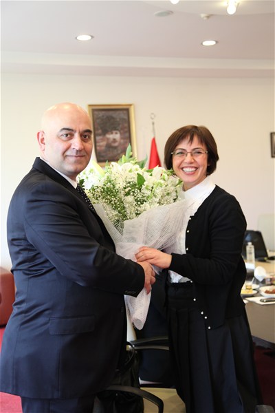 Ayrıca SATSO Yönetim Kurulu üyesi Yıldıray Çakar da tüm bayanların nezdinde Yönetim Kurulu Üyesi Yıldız Bezek'e çiçek hediye etti.