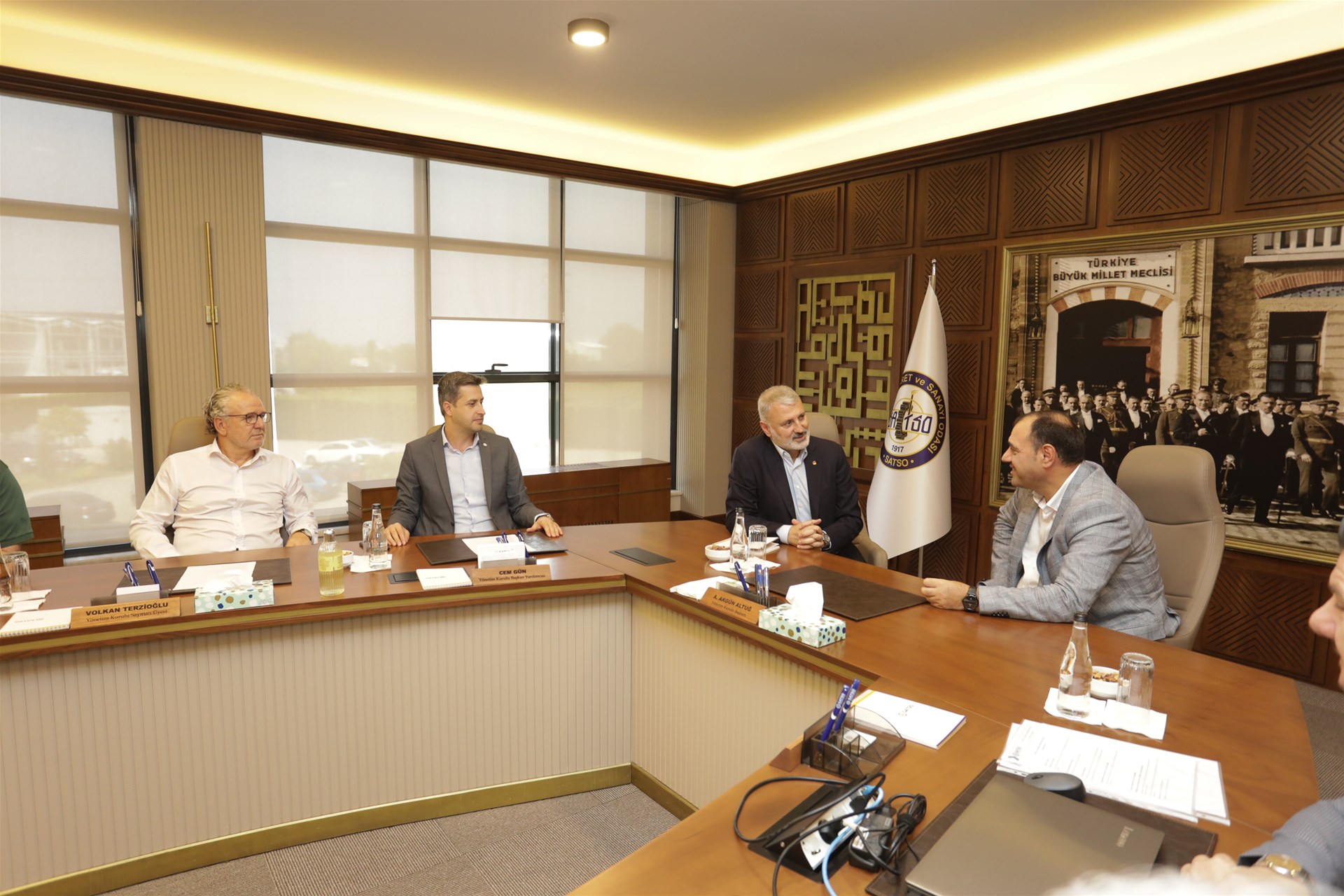 Program kapsamında Sakarya Ticaret ve Sanayi Odası'nı da ziyaret eden Vali Kaldırım, Sakarya Ticaret ve Sanayi Odası Yönetim Kurulu Başkanı A. Akgün Altuğ ve SATSO Yönetim Kurulu Üyeleri tarafından ağırlandı.