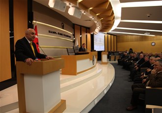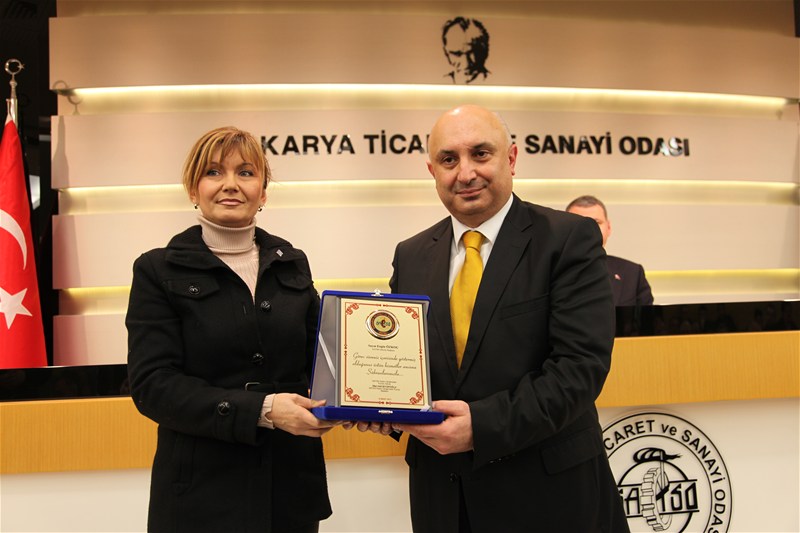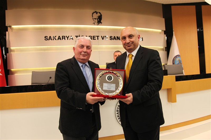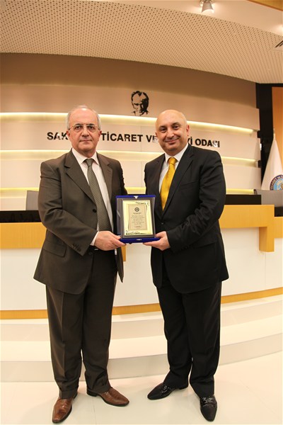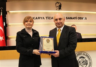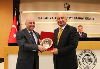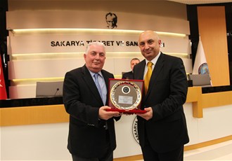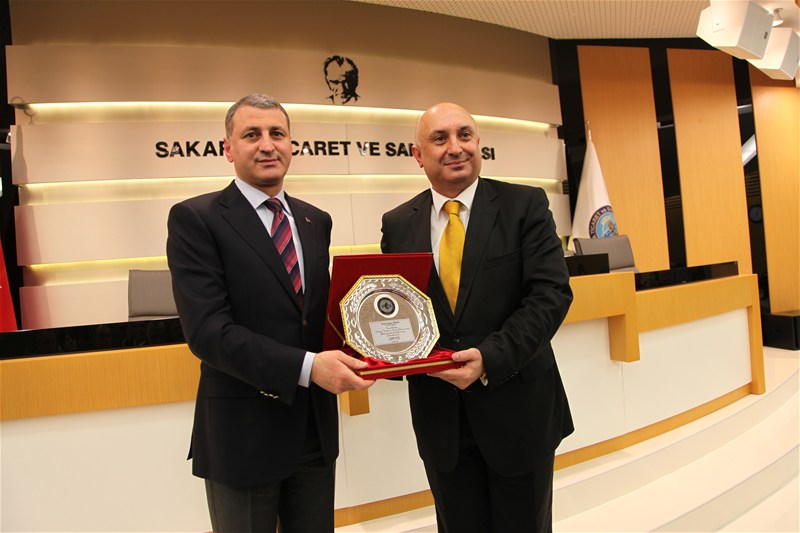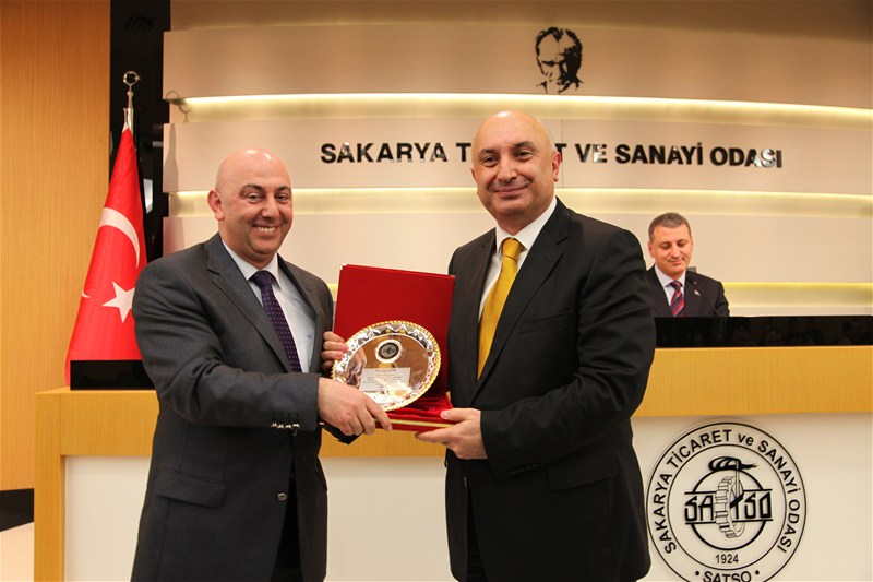 Konuşmaların ardından SATSO'ya kattıkları ve hizmetlerinden dolayı engin Özkoç'a plaket takdim edildi.