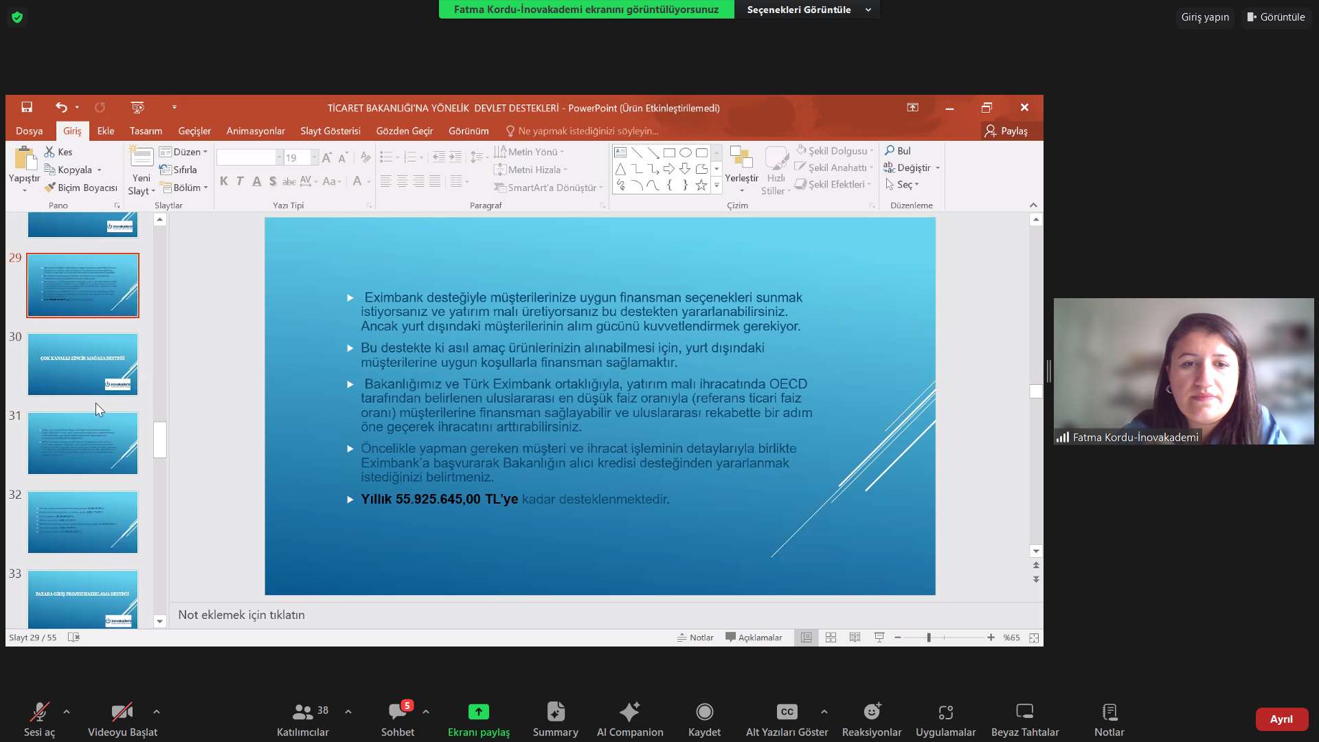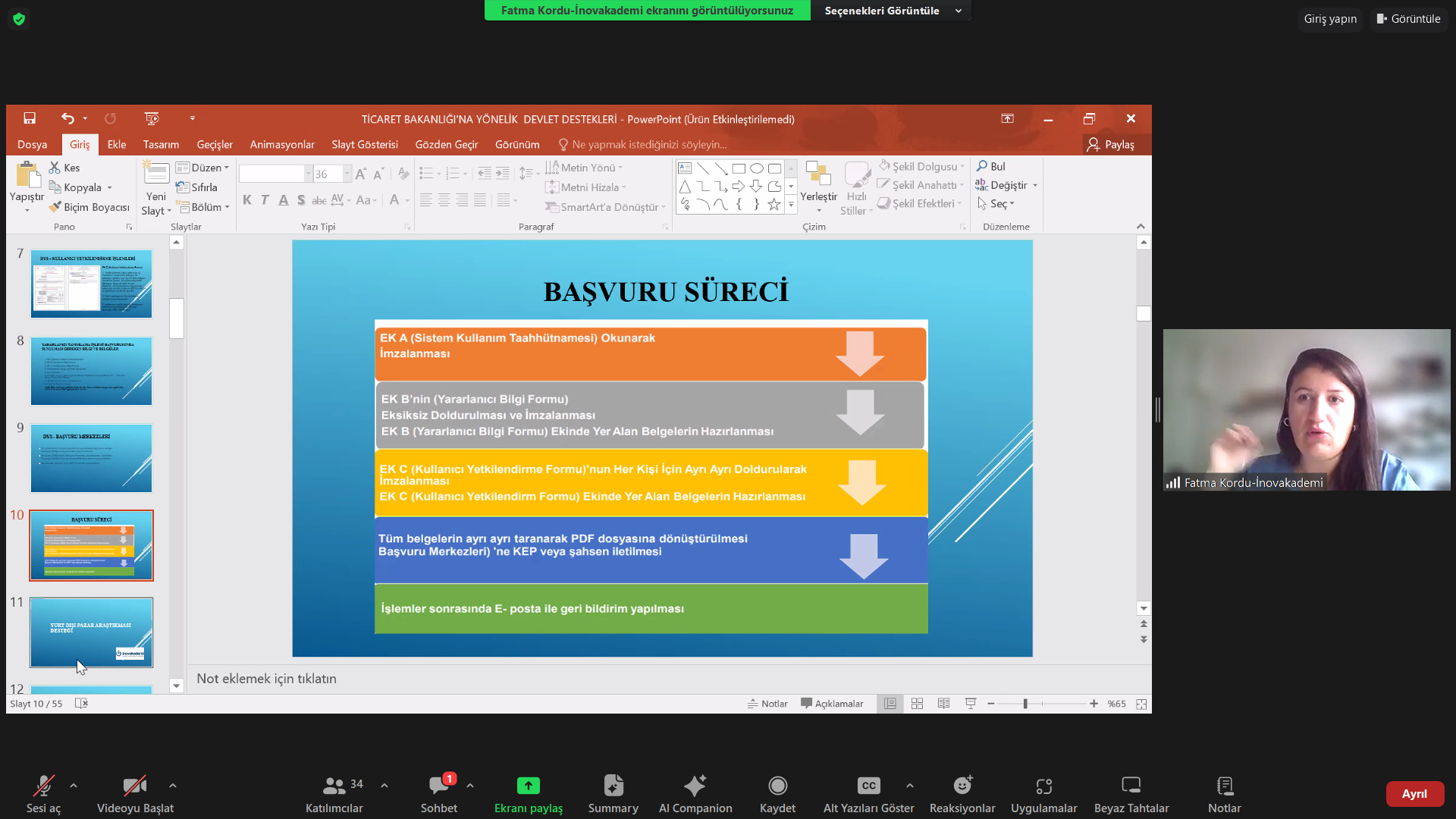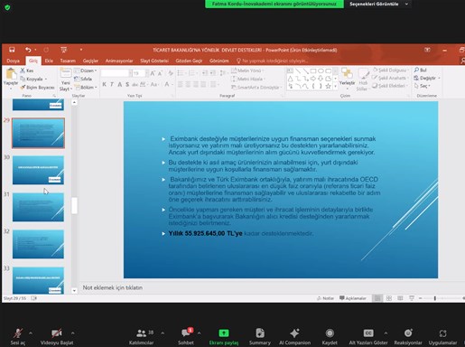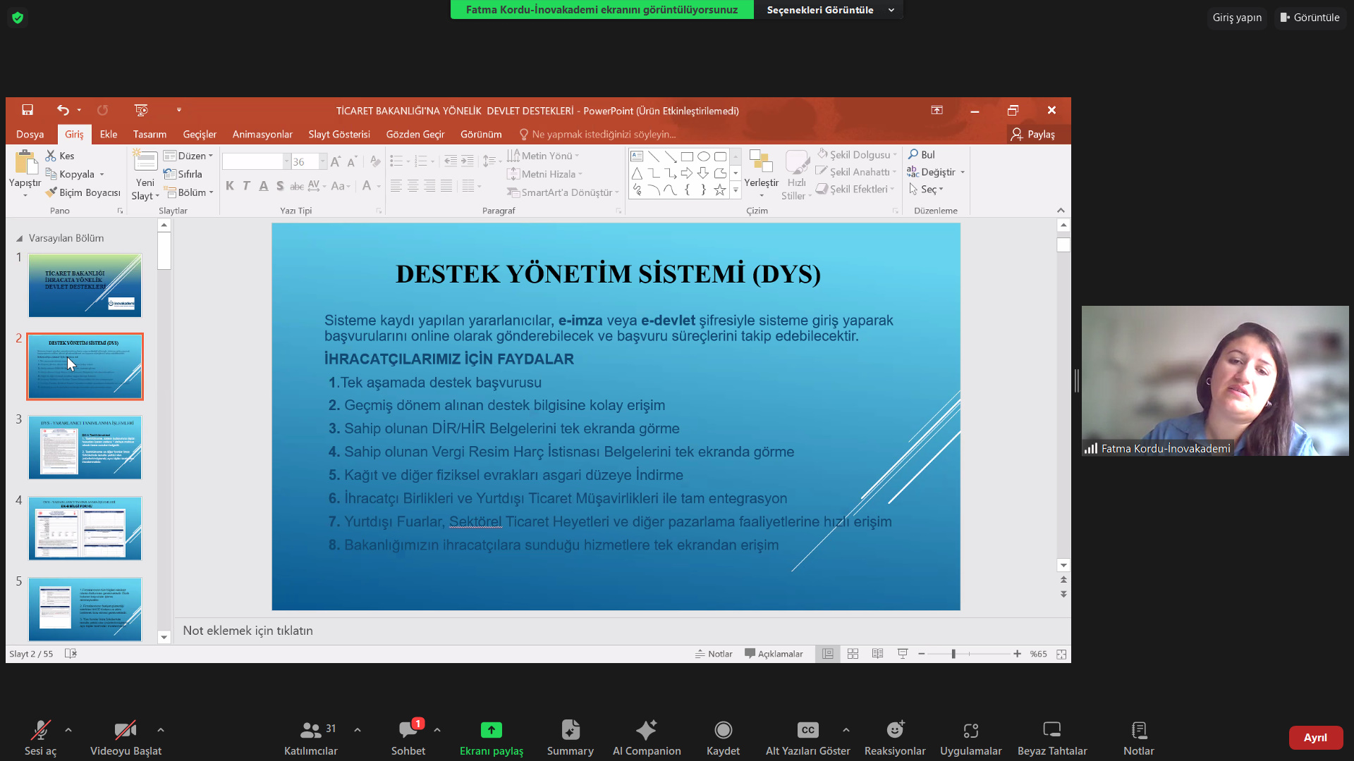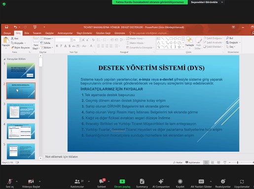 SATSO ve İnovakademi iş birliğinde Eğitmen Fatma Kordu’nun sunumuyla gerçekleşen eğitime katılan SATSO Üyelerine, DYS (Destek Yönetim Sistemi), Yurt Dışı Pazar Araştırması Desteği, Yurt Dışı Marka Tescil Desteği, Yurt Dışı Fuar Katılımı Desteği, Yurt İçi Fuar Katılımı Desteği, Yurt Dışı Reklam Desteği, Yurt Dışı Kira Desteği, Pazara Giriş Belgeler Desteği, Eximbank İhracat Kredi Sigortası Tazmin Desteği, Çok Kanallı Zincir Mağaza Desteği, Tasarım Desteği, Küresel Tedarik Zinciri Desteği, Yurt Dışı Marka Satın Alma Desteği, Hedef Ülkeler Listesi (2024 Yılı) konularında bilgilendirme yapıldı, merak edilenler cevaplandırıldı.