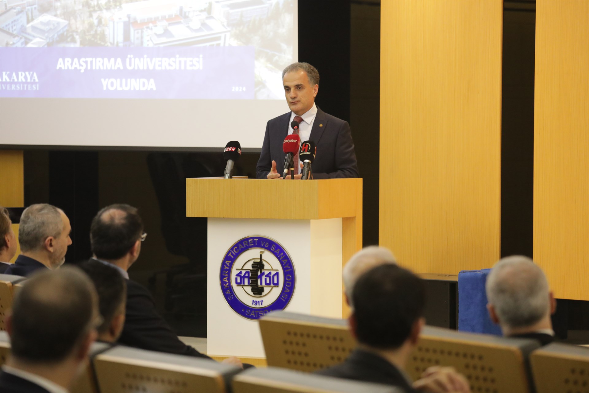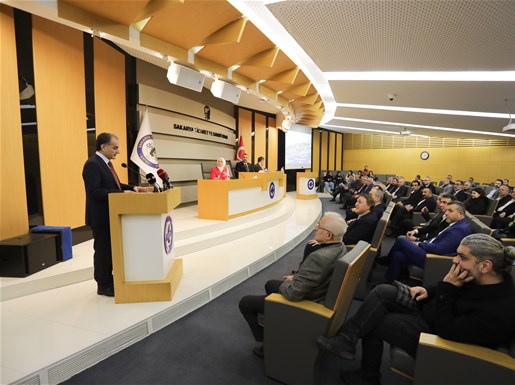 Meclis Başkanı Erdem Ercan’ın karşılama konuşmasının ardından kürsüye teşrif eden Rektör Prof. Dr. Hamza Al; “Üniversitemizde göreve geldiğimiz zaman birçok akademik toplantı gerçekleştirdik. Üniversitemiz ile Sakarya’yı entegre etmek için çalıştık. SAÜ’ nün 2 yüz yıllık bir akademik geleneği var. Sakarya Üniversitesi ilk akla gelen üniversitelerden biri olması için çabalıyoruz. Bizler kısa vadede ülkemizin ilk 20 üniversitesi arasında girip bir de araştırma üniversitesi olmak istiyoruz. Zaten yakın zamanda araştırma üniversitesi adayı toplam 6 üniversitenin içinde Sakarya Üniversitesi de var. İlk 20 içine girdiğimiz ve de Araştırma Üniversitesi unvanı aldığımız zaman ciddi bir kaynağa da sahip olabiliyoruz. Topluma ve bilime daha çok fayda sağlamak amacıyla araştırma üniversitesi unvanını almamız çok önemli. Aday statüsüne alınmamızın ardından 2 sene kadar bir takip ve değerlendirme süreci geçireceğiz. Bu anlamda iş dünyamızın da paydaşlığına ihtiyacımız olacak.