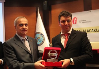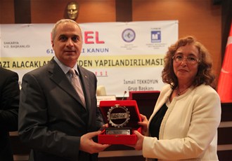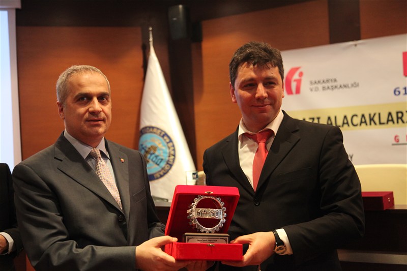 Yararlı geçen panelin ardından Gelir İdaresi Daire Başkanı Sayın Ayşe Dilbay ile birlikte Grup Başkanları; Ömer Çakıcı ve İsmail Tekkoyun'a teşekkür plaketlerini SATSO Yönetim Kurulu başkanı Mahmut Kösemusul, Vergi Dairesi Başkanı Recep Alp, MMMO Başkanı Selattin Çakırsoy takdim ettiler