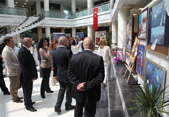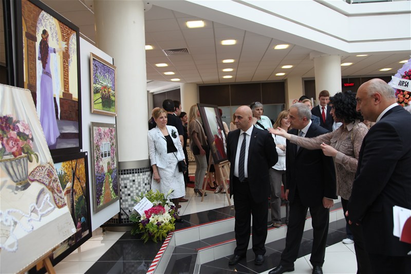 Yağlıboya karma resimlerinden oluşan Nilgün Hun Sanat Atölyesi sergisi SATSO fuayesinde törenle açıldı.
