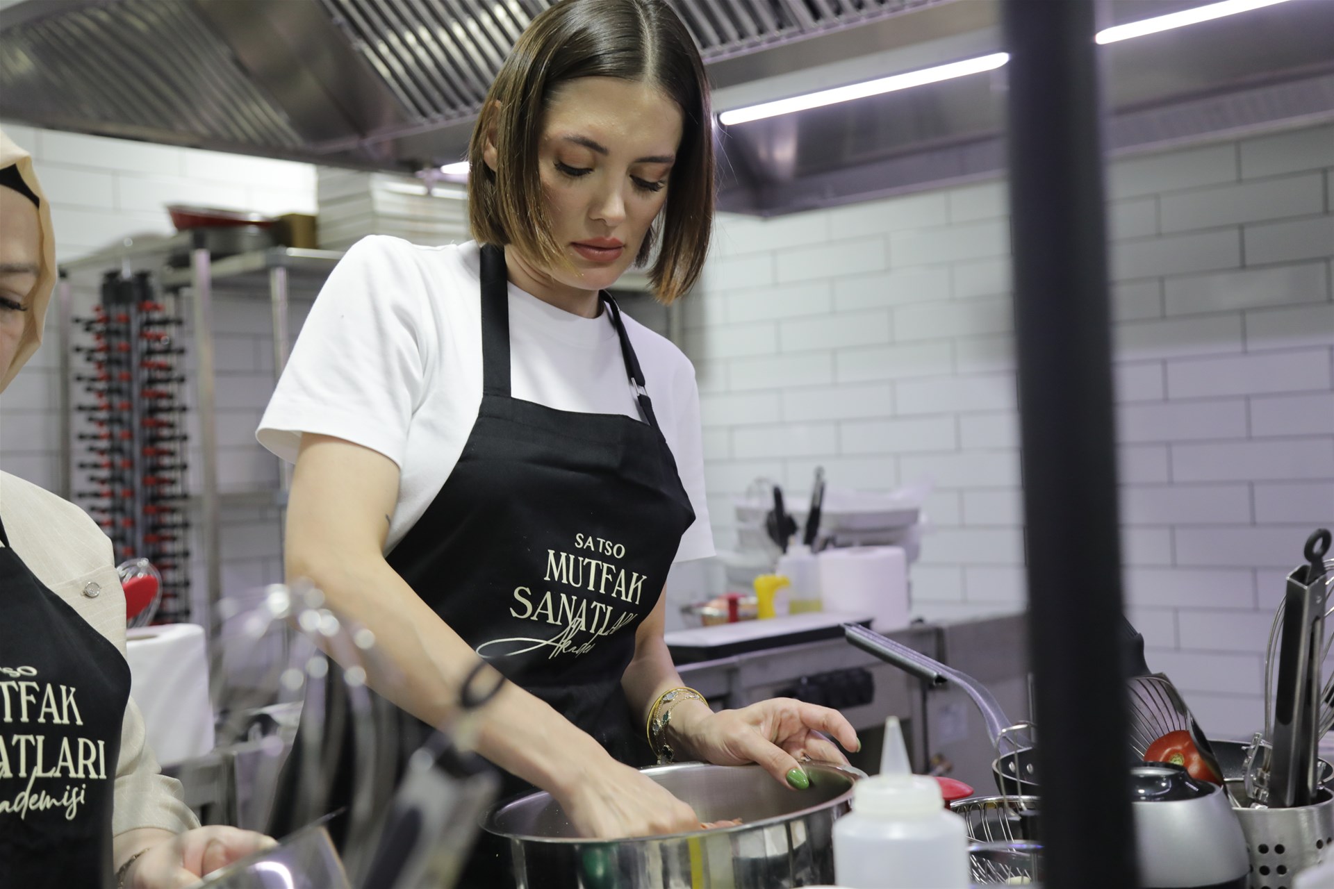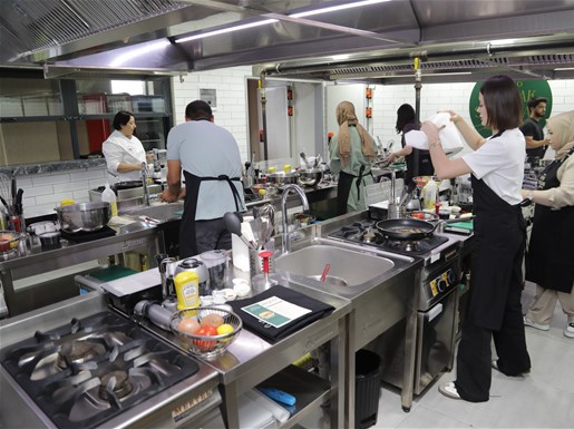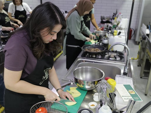Şef Hatice Akman’ın reçetesine uygun olarak verilen malzemelerle tüm aşamaların uygulamalı olarak işlendiği yemek atölyesinde katılımcılar birbirleriyle kaynaşma fırsatı buldu ve eğlenceli anlar yaşandı. Katılımcılar iyi bir yemeğin püf noktalarını, pişirme stillerini, malzeme kombinasyonları ve homojen karışımlar hakkında ayrıntılı bilgileri uygulamalı olarak öğrenme fırsatı buldu.