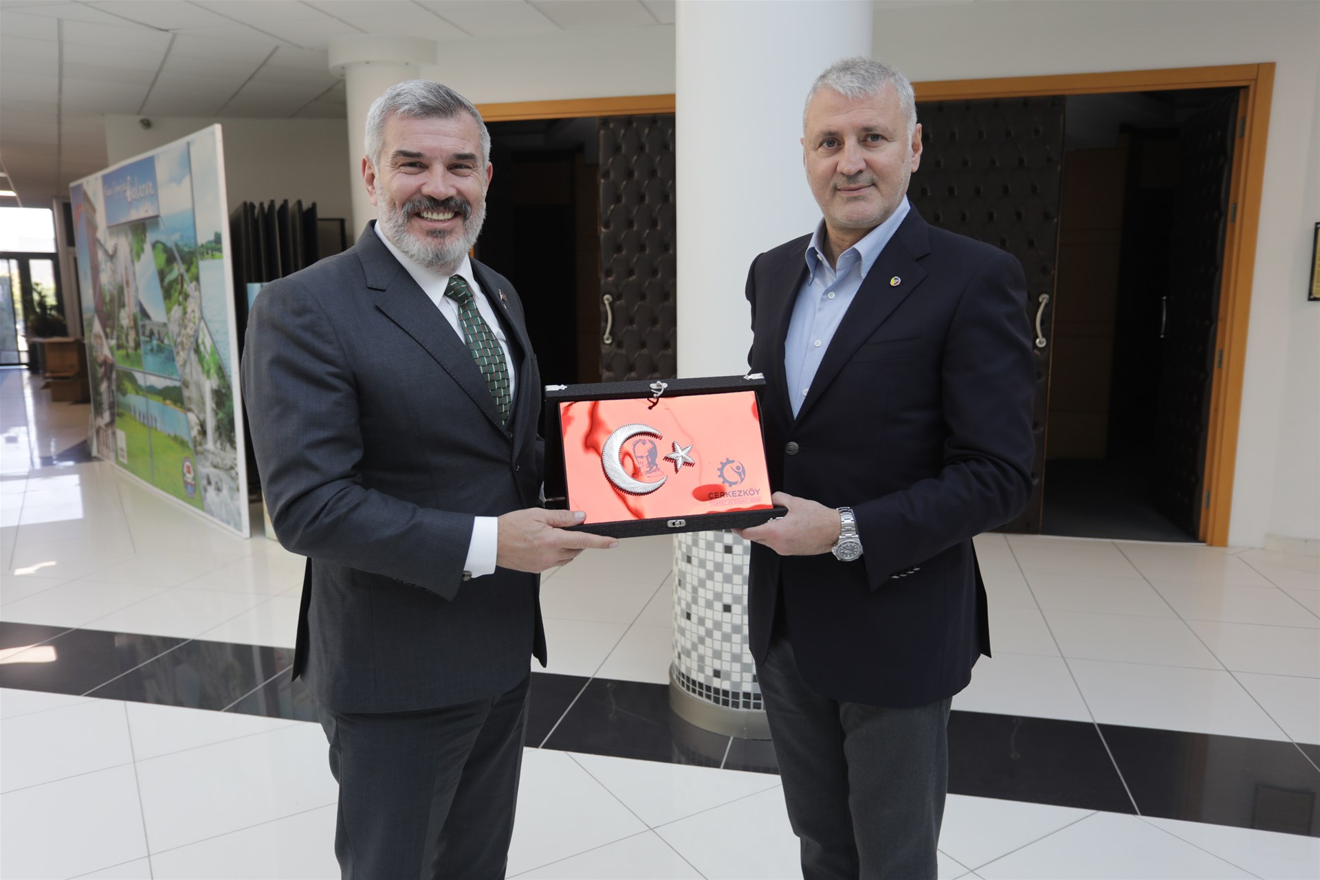 ÇTSO Yönetim Kurulu Başkanı Ahmet Çetin, “Başkanımıza nazik misafirperverliği için teşekkür ediyoruz. Üretim üslerinin hedefleri ve amaçları benzerdir. Ortak özelliğimiz doğabilecek ihtiyaçları önden tespit ederek daha hızlı yol alıyoruz. Bugün gibi istişareleri yaparak bu amaçta birbirimize nasıl destek olabiliriz bunu önemsiyoruz. Amacımız hem şehirlerimizin hem de güçlü bir Türkiye oluşturmaktır. Hepimizin de ortak kazancı bu olacaktır. Akgün Başkanımızın vizyonu belli ve takdir ediyorum. Şehrin ve ekonominin gelişmesi adına bu vizyondaki kişiler bu koltuklarda oturmalıdır. Kişilerin koltuğa ihtiyacı yok koltuğun bir başkana ihtiyacı vardır her zaman. Çerkezköy olarak Sakarya ve birçok üreten il gibi katma değer sağlamayacak çalışmalara devam edeceğiz.” dedi.