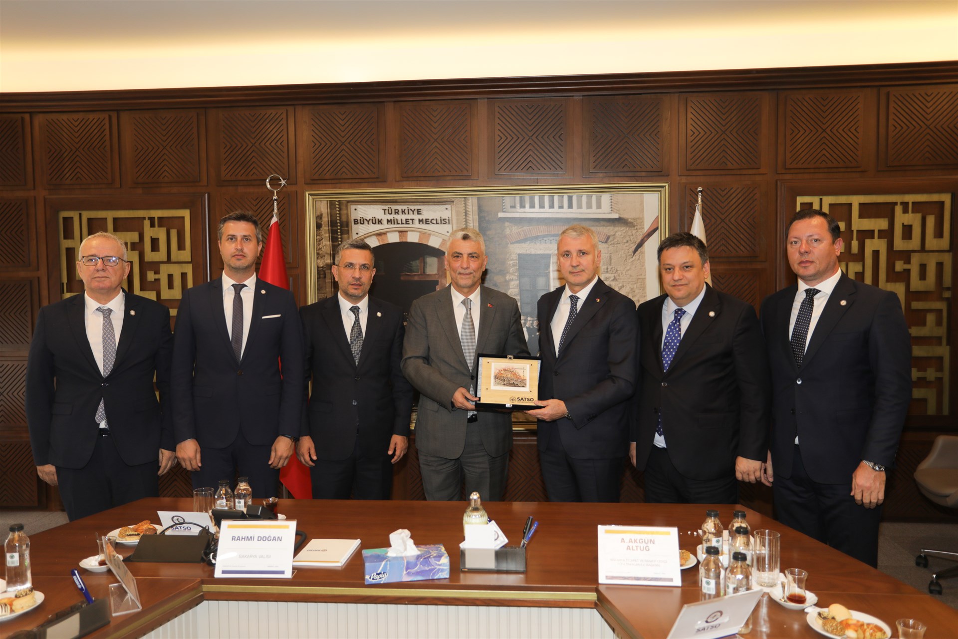 T.C. Ticaret Bakanı Prof. Dr. Ömer Bolat ve Türkiye İhracatçılar Meclisi Başkanı Mustafa Gültepe Sakarya Ticaret ve Sanayi Odası Yönetim Kurulu Başkanı A. Akgün Altuğ, Meclis Başkanı Erdem Ercan ev sahipliğinde Sakarya Valisi Rahmi Doğan, AK Parti Genel Başkan Yardımcısı Ali İhsan Yavuz, TBMM KEFEK Başkanı ve Sakarya Milletvekili Çiğdem Erdoğan, AK Parti Sakarya Milletvekilleri Lütfi Bayraktar ve Ali İnci, Sakarya Büyükşehir Belediye Başkanı Yusuf Alemdar, SATSO Yönetim Kurulu Üyeleri, Meclis Üyeleri, Bakanlık ilgili genel müdürleri ile bir araya geldi.
