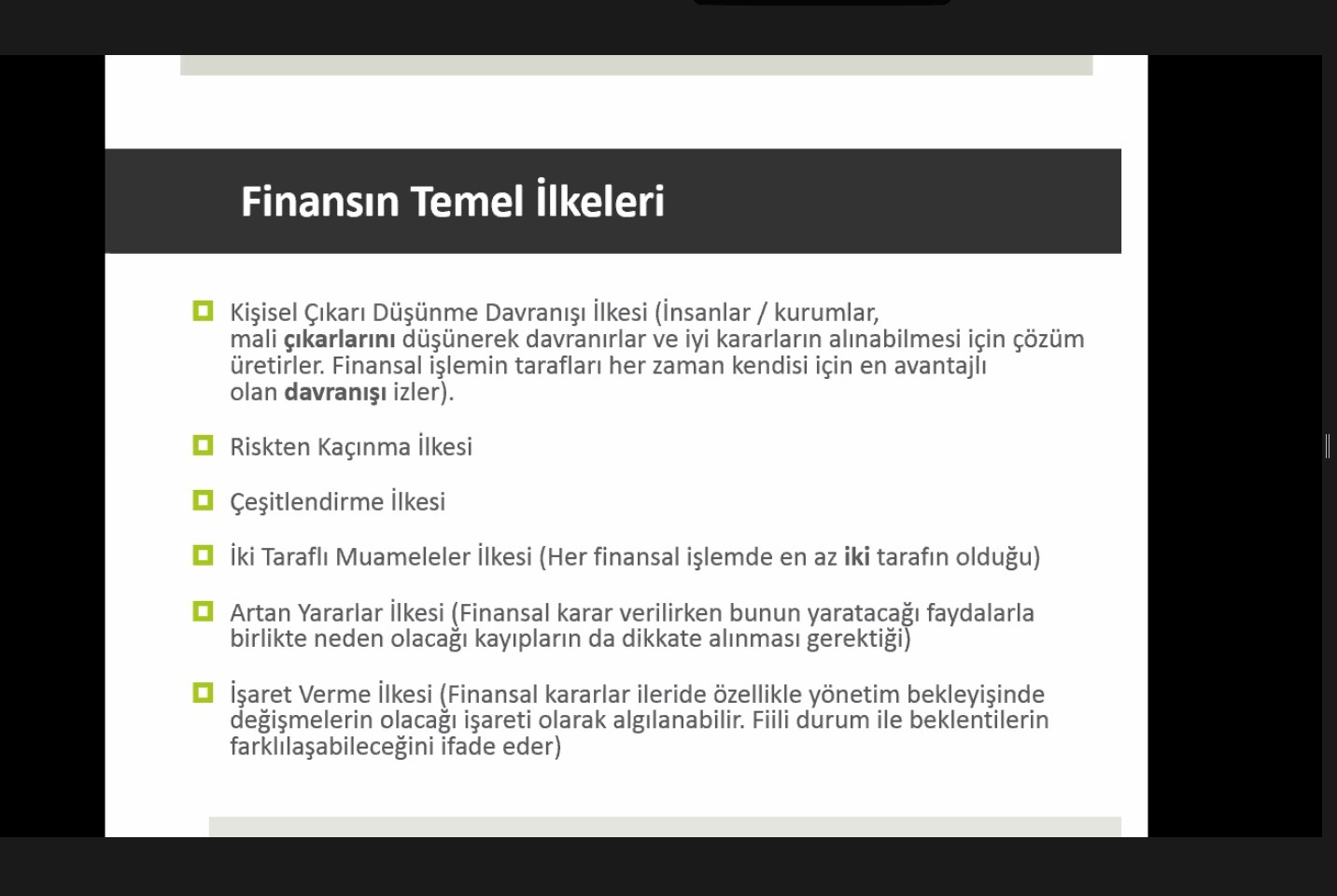 Prof. Dr. Ramazan Aktaş’ın gerçekleştirdiği online eğitimde Finansın ve finansal piyasaların tarihsel gelişimi, son yıllarda finanstaki gelişmeler piyasalar, yatırımlar ve finansal yönetim arasındaki ilişkiler, finansal yönetimin fonksiyonları, finansal kararlar ile firma değeri arasındaki ilişki, finans yöneticisinin vermesi gereken kararlar, finans yöneticisinin görevi, finans yöneticisinin amaç fonksiyonu, işletmelerde finans fonksiyonunun örgütlenmesi, vekâlet sorunu, kâr maksimizasyonu ve sermayenin fırsat maliyeti ve firmanın amacı ve iş etiği gibi konular işlendi.