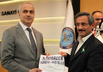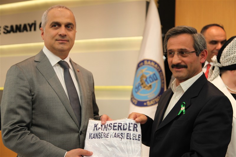 Ayrıca Lösemi ve Kanser Hastaları Sağlık Eğitim Derneği (KANSERDER) yetkilileri tarafından kanser hastası çocuklar tarafından yapılan tablo ve kanserle mücadele tişörtleri de KANSERDER Rozetleri ile SATSO Yönetim Kurulu Başkanı Mahmut Kösemusul ve Meclis Başkanı Adnan Borazancıoğlu'na takdim edildi.