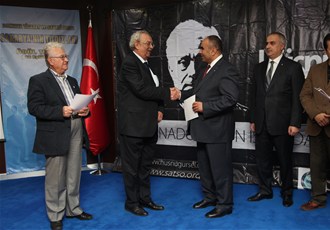 "Anadolu'nun ışığında üretim" konulu Hüsnü Gürsel Fotoğraf Yarışması jüri üyeleri Sayın İbrahim Zaman, Prof. Dr. Barbaros Gürsel, Sayın Servet Sezgin, Sayın Arda Oskay, Sayın Arzu Açıkel ve Sayın Serdar Akyay ve SAGÜSAD Başkanı Müjgan Zaman belgelerini SATSO Meclis Başkanı Adnan Borazancıoğlu ve Başkanı Sayın Mahmut Kösemusul'dan aldılar