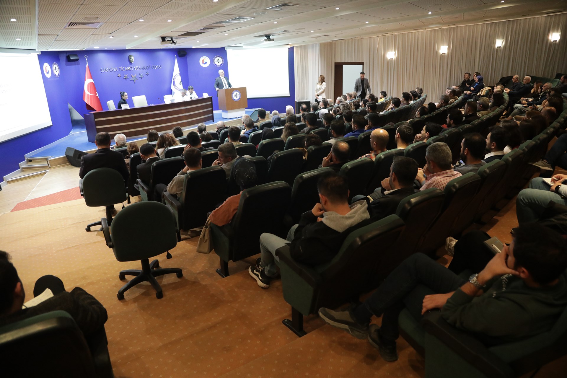 Sakarya Ticaret ve Sanayi Odası bünyesinde çalışmalarını yürüten Mühendislik ve Mimarlık Hizmetleri sektörü temsilcilerinin oluşturduğu 18. Meslek Komitesi Başkanı Mehmet Nuralp Paker yaptığı konuşmada, “Binaların yangından korunması yönetmeliği sadece hukuki bir sorumluluk değil, işletmelerimizin ve insanımızın güvenliğini ilgilendiren son derece kritik bir konudur. Sakarya Büyükşehir Belediyesi İtfaiye Daire Başkanlığı’na ve değerli katılımcılara teşekkür ediyorum.” dedi.