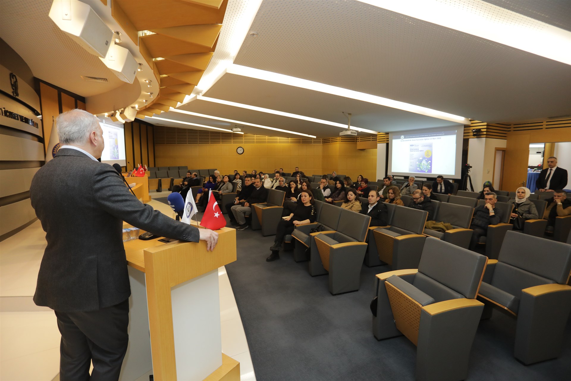 “22 Mart Dünya Su Günü” kapsamında gerçekleştirilen eğitim SUBÜ İklim Değişikliği ve Sürdürülebilirlik Uygulama ve Araştırma Merkezi Müdürü ve SATSO Yeşil Mutabakat Komisyonu Başkanı Prof. Dr. Ömer Hulusi Dede’nin sunumuyla gerçekleştirildi.
