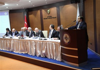 Kura çekilerek 32 meslek komitesi temsilcilerine söz verilmesiyle gerçekleştirilen toplantıda ilk sözü 18. Meslek Komitesi (Mimarlık-Mühendislik Faaliyetleri Ve İnşaat Taahhüt İşleri Meslek Grubu)Başkanı Yahya Büyüksaraçoğlu aldı.