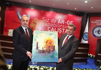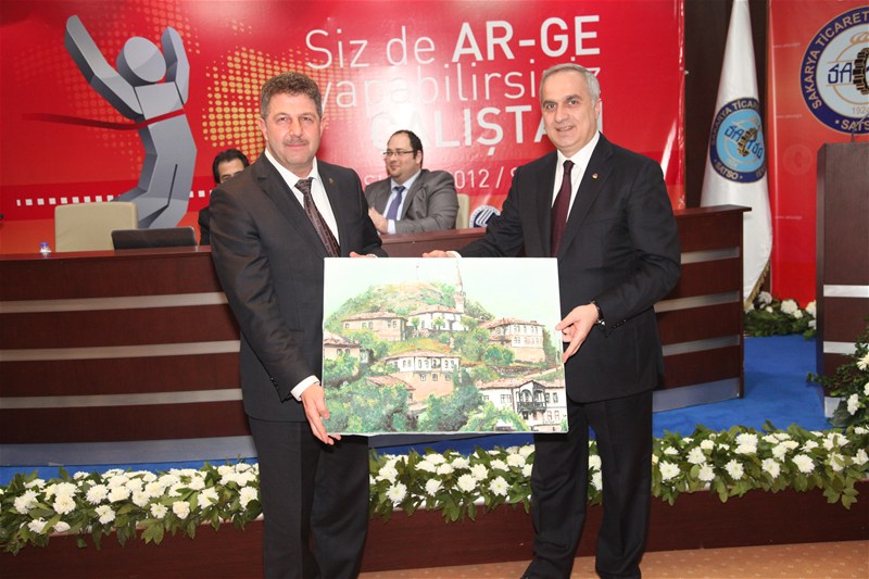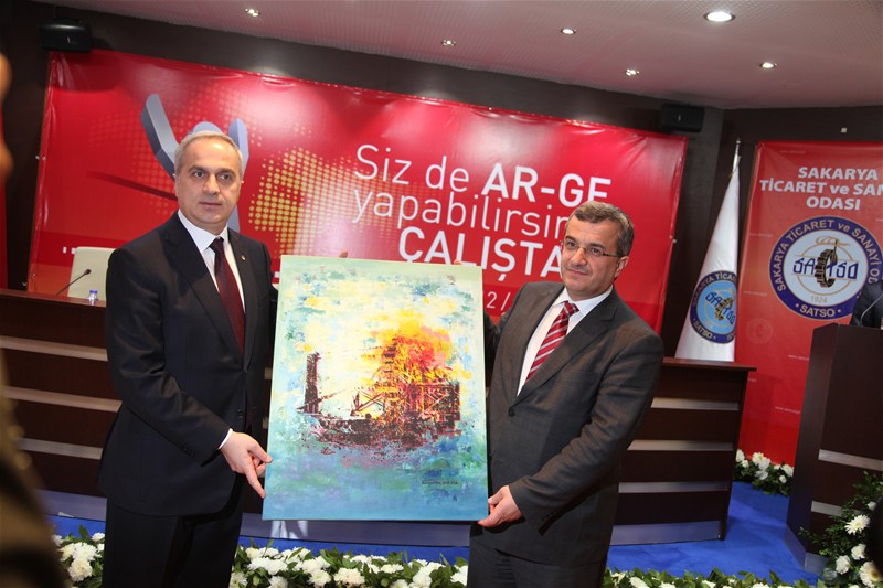 Vali Mustafa büyük'ün konuşmasının ardından günün anlam ve önemine ithafen Sakarya Ticaret ve Sanayi Odası Yönetim Kurulu Başkanı Mahmut Kösemusul Bilim, Sanayi ve Teknoloji Bakan Yardımcısı Prof. Dr. Davut Kavranoğlu'na bir tablo takdim etti.