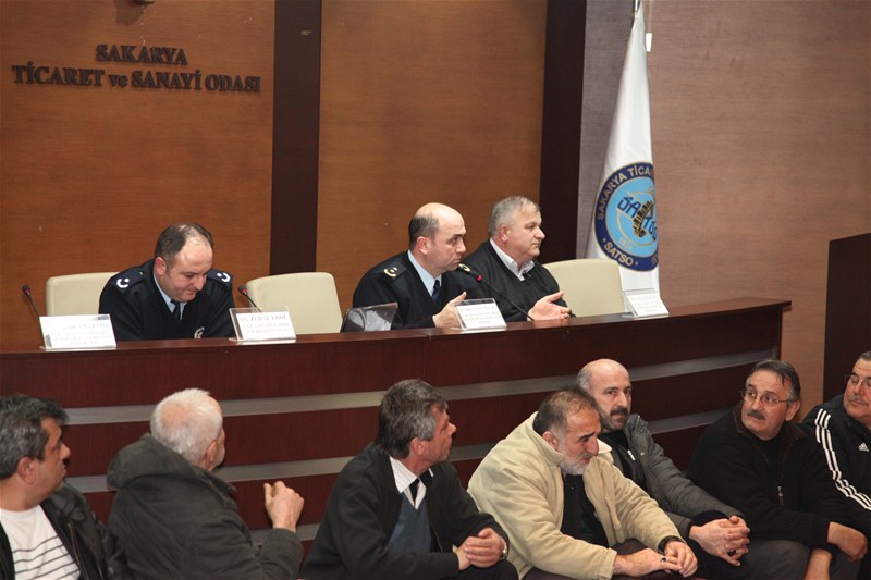Sakarya Ticaret ve Sanayi Odası Ali Coşkun Toplantı Salonu'nda yapılan ve Sakarya Ticaret ve Sanayi Odası Yönetim Kurulu Başkanı Mahmut Kösemusul'un da iştirak ettiği eğitim seminerinde; 19. Meslek Komitesi Başkanı Halit Evin, SATSO Meclis ve Meslek Komitesi Üyesi Hüsnü Elbek, Sakarya Emniyet Müdürlüğü Trafik Denetleme Şube Müdürü Mustafa Ayan, Şube Müdür Yardımcısı Hakan İzmir ve SAÜ Sapanca MYO Öğretim Üyesi Zuhal Erol konuşmacı olarak divanda yer aldılar.
